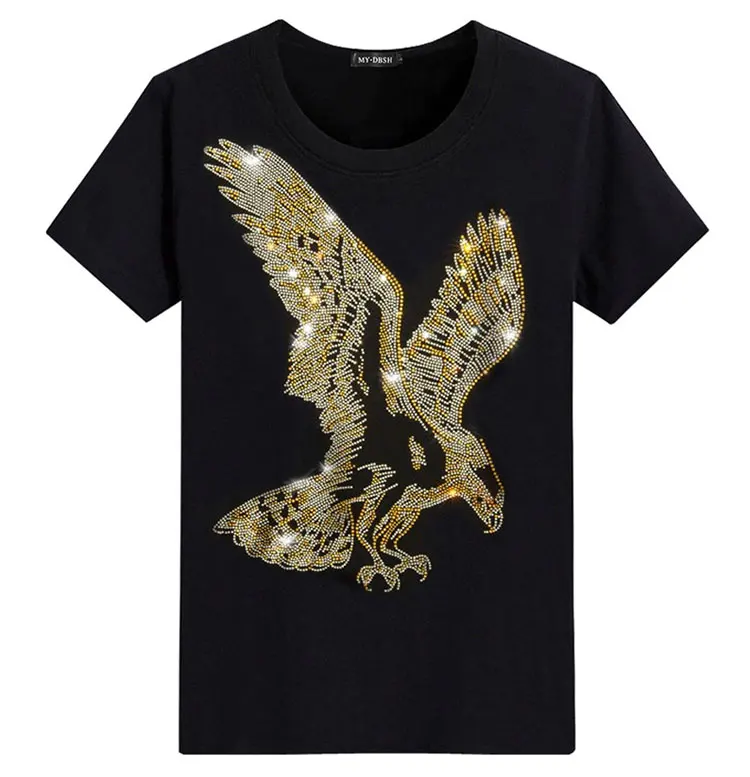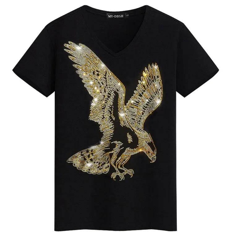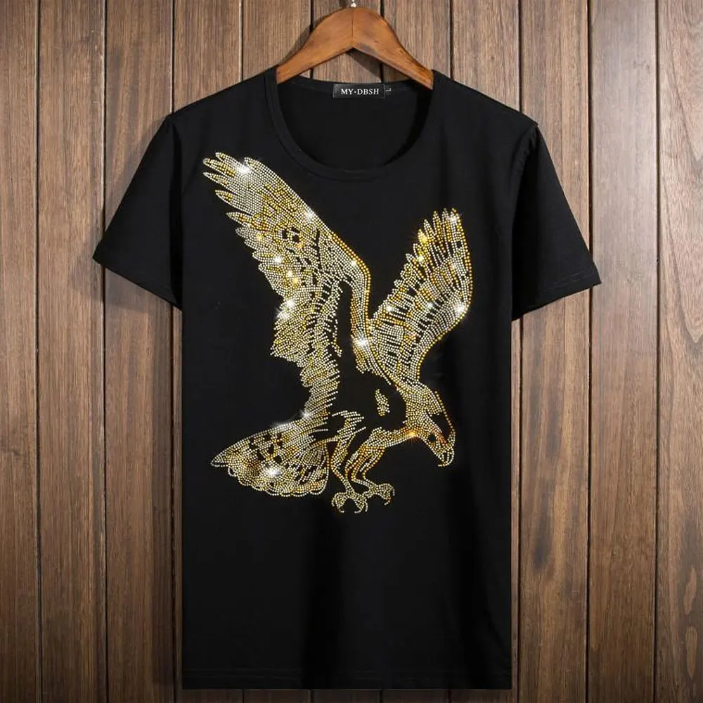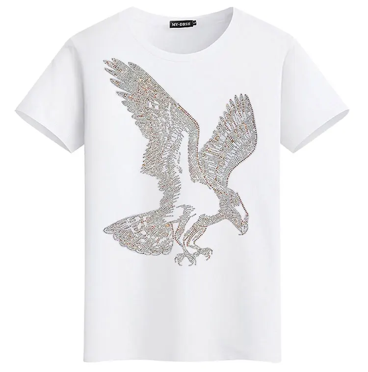Футболка в английском стиле, с коротким рукавом, с принтом орла, летняя, стразы, мужская, модная, однотонная, MYDBSH