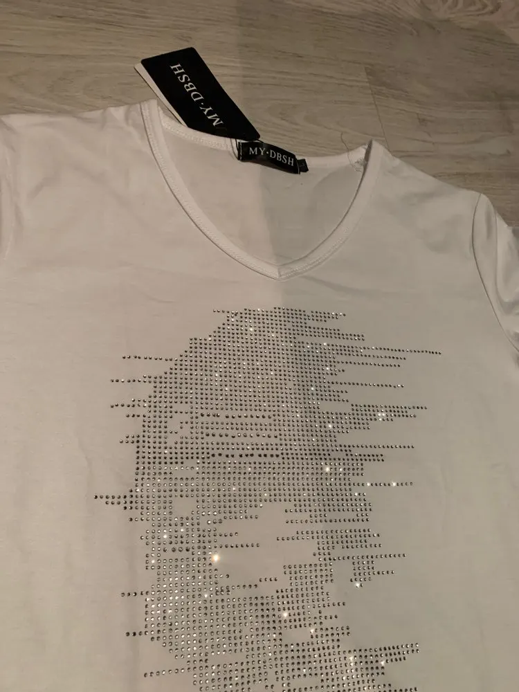 Дизайн рисунка с этими аппликациями делает его очень ярким и разным. Эта пустая модель выглядит очень стильно, только ткань футболки не очень хорошего качества, выглядит так, будто ее постирают шарики на ткани, очень деликатная.