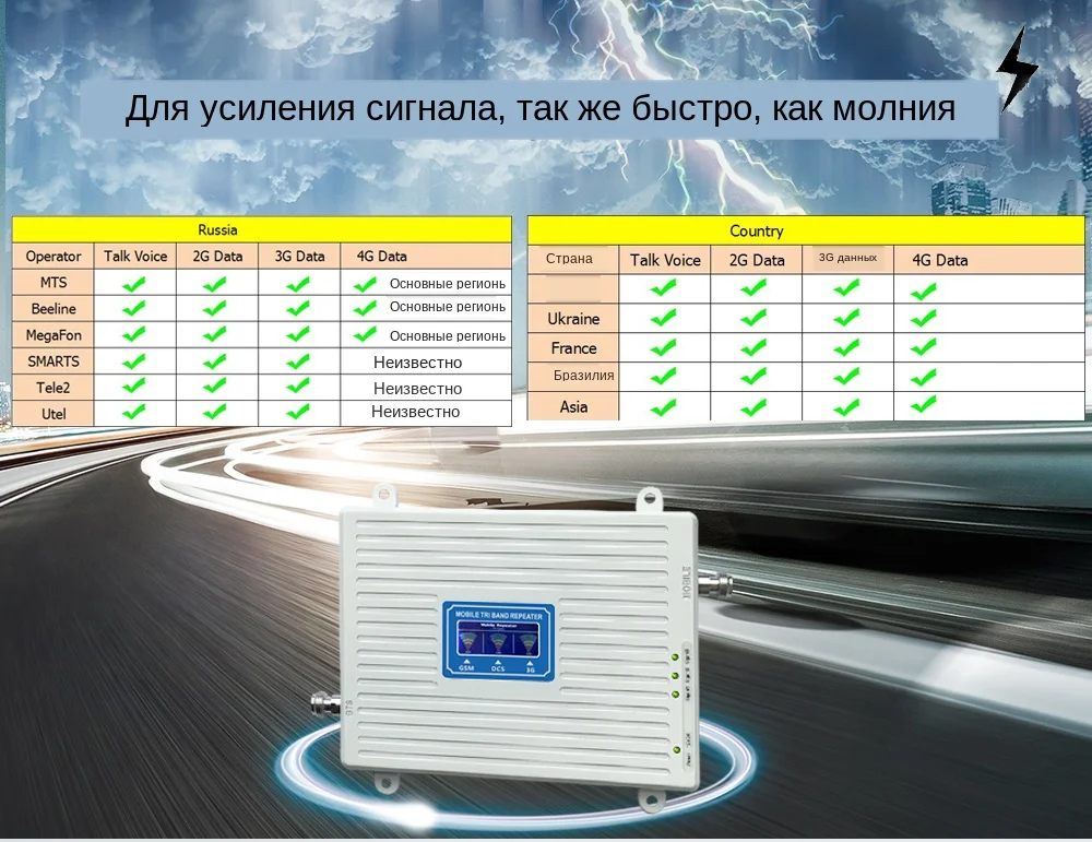 Усилитель сотового сигнала, ретранслятор Gsm 2G 3g 4g, трехдиапазонный усилитель сотового сигнала 2g 3g 4g GSM 900 LTE 1800 WCDMA 2100