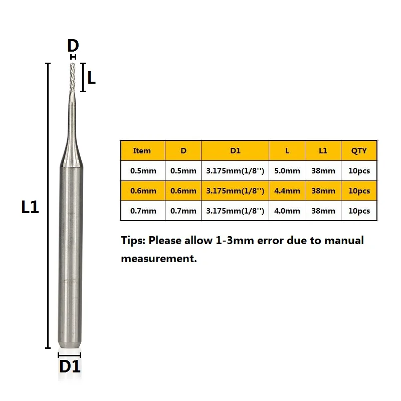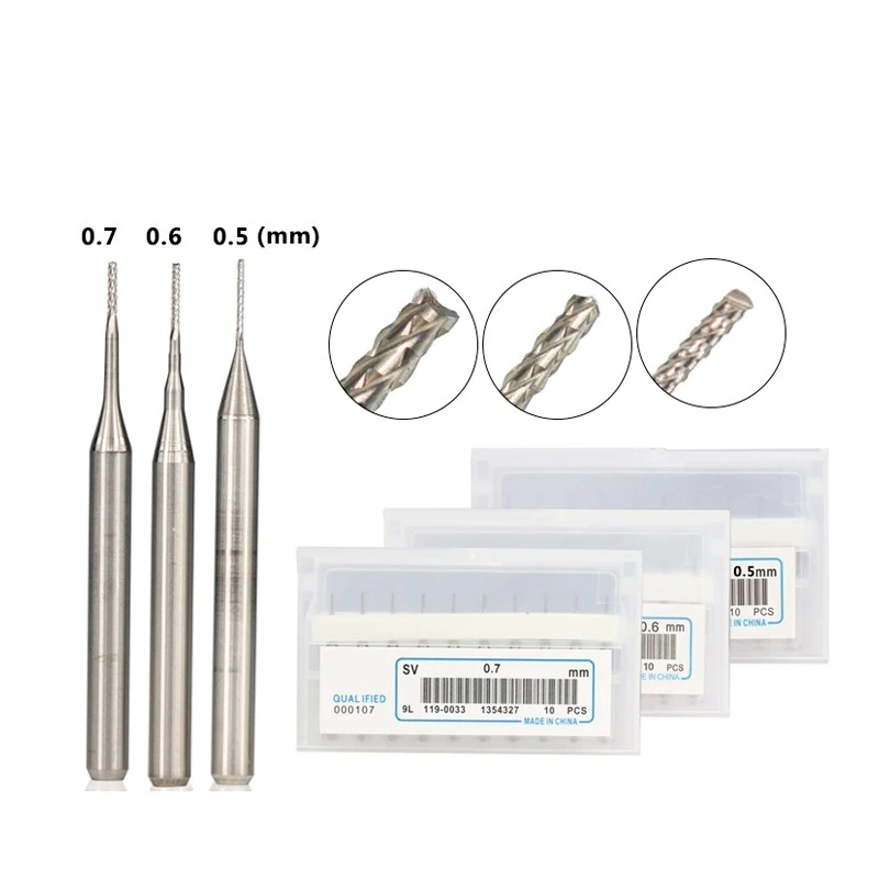 НАБОР КОНЦЕВЫХ ФРЕЗ PCB, 10 шт., 0,50,60,7 мм, хвостовик 3,175 мм