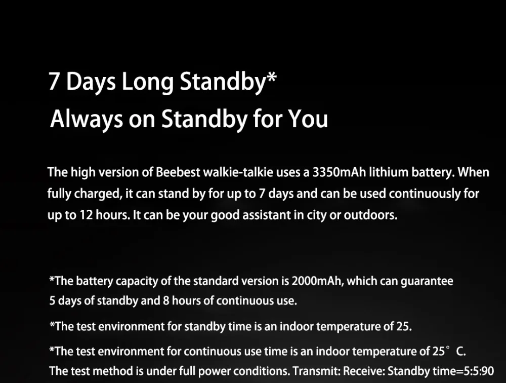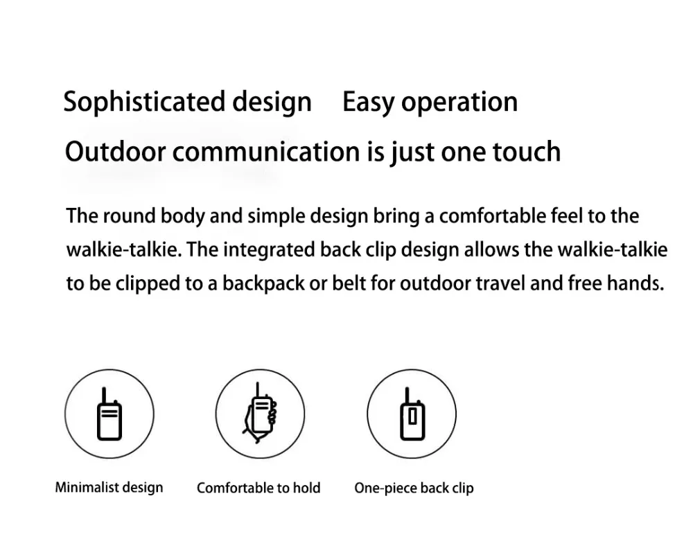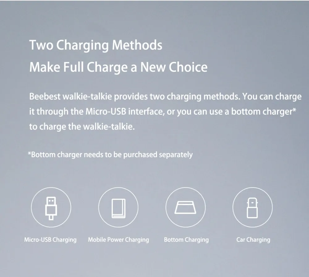 1-5 км стабильный вызов, настраиваемая антенна обеспечивает четкий эффект вызова.5 Вт наивысшей мощности, изготовленная на заказ фосфорная бронзовая антенна имеет лучшую производительность вызова, чем обычная латунная антенна, и может иметь лучшие эффекты вызова в торговых центрах, подвалах или других сложных условиях. Переключатель на китайском и английском языках, пожалуйста, свяжитесь со службой поддержки клиентов.Гладкий корпус и простой дизайн дарят комфорт рации. Интегрированная конструкция с зажимом может использоваться для крепления рации к рюкзаку и поясу для путешествий на открытом воздухе.Синяя версия оснащена литиевой батареей емкостью 3350 мАч (синяя версия). Он используется для полной мощности до 7 дней и непрерывной работы 12 часов.White Edition имеет емкость аккумулятора 2000 мАч, что гарантирует 5 дней работы в режиме ожидания и 8 часов непрерывного использования. Это может быть хорошим помощником для вас в городе или на открытом воздухе.Предлагает два способа зарядки, вы можете зарядить его через интерфейс Micro-USB (входит в комплект), или вы можете использовать специальное зарядное устройство (не входит в комплект, предоставит покупку отдельно позже) для зарядки радио.