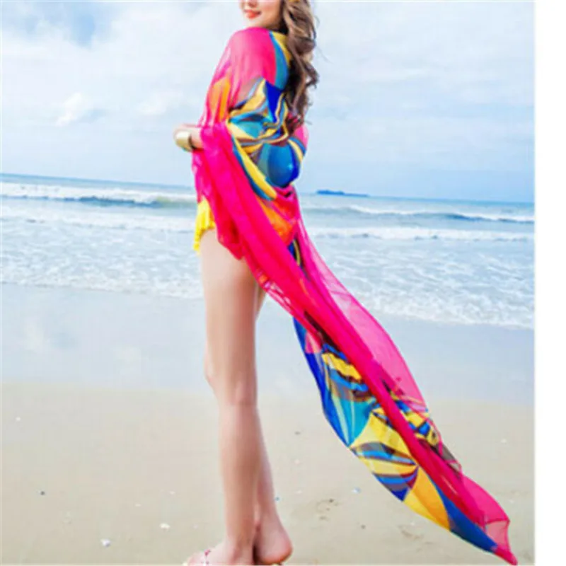 Для женщин шифоновое пляжное Бикини Cover Up Обёрточная бумага Шарф...
