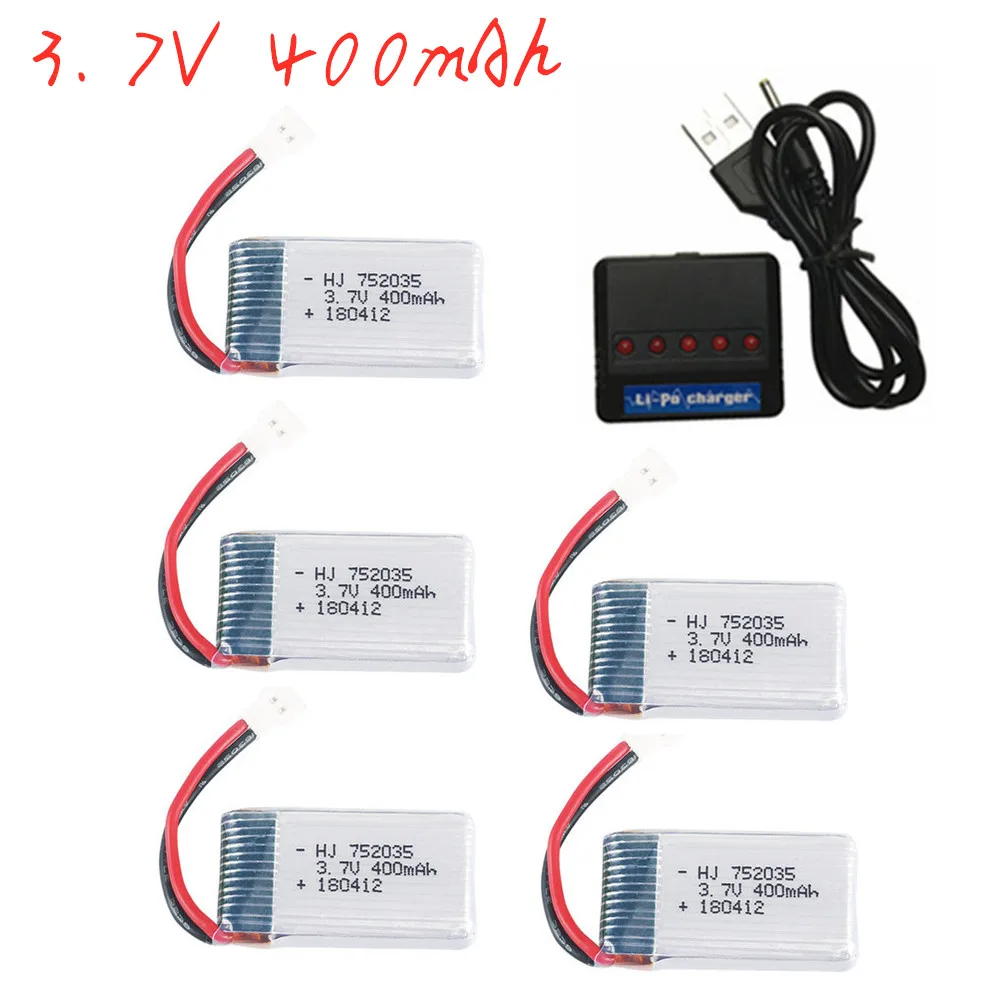 Аккумулятор lipo 3,7 в 400 мАч + зарядное устройство 752035 в для радиоуправляемого дрона H31 X4 H107 H6C KY101 E33C E33 U816A V252, запасные части от 1 шт. до 5 шт.