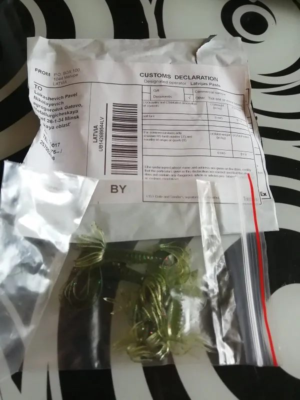 Продавец даже не положил приманки в примитивный пакет, просто бросил в упаковку и отправил. Можно быть жаднее, да некуда). Сами приманки маленькие, юбку можно не считать, смело отнимайте от указанного размера 2см