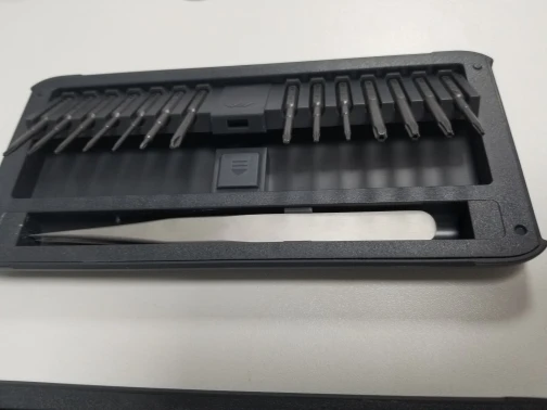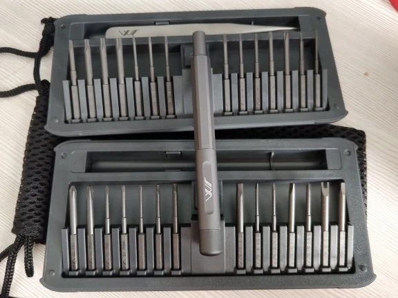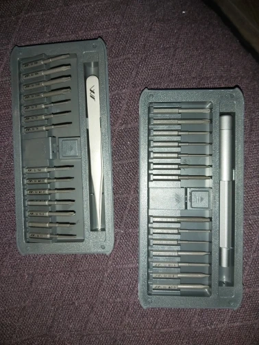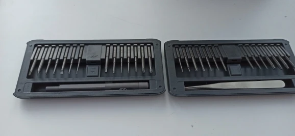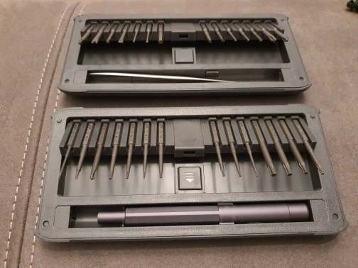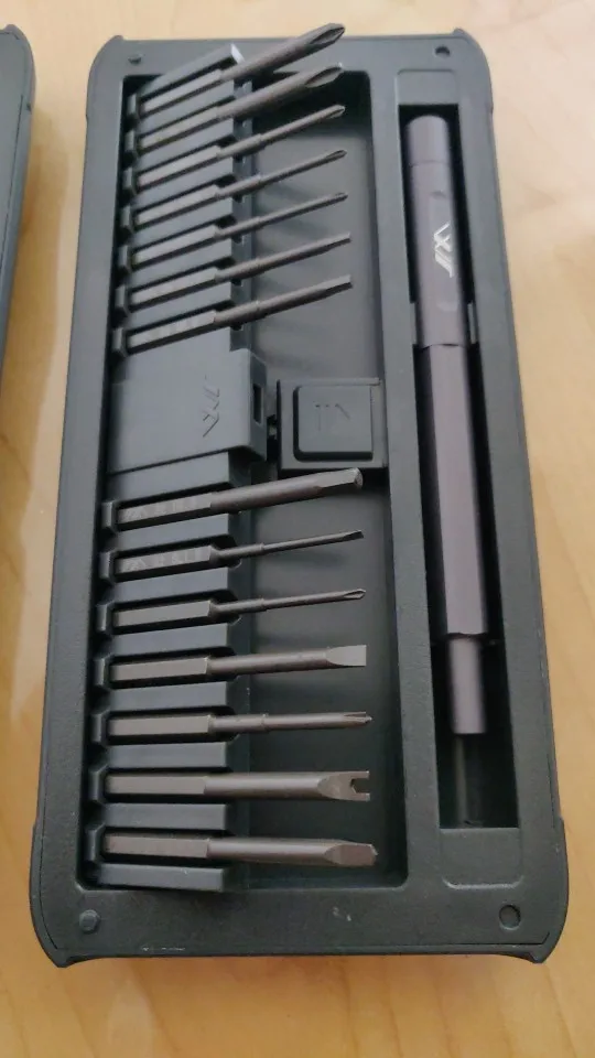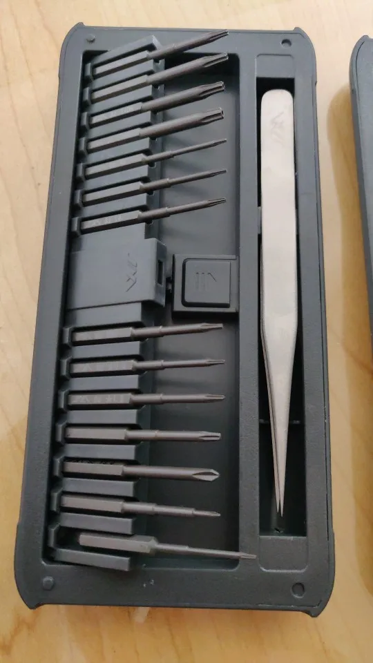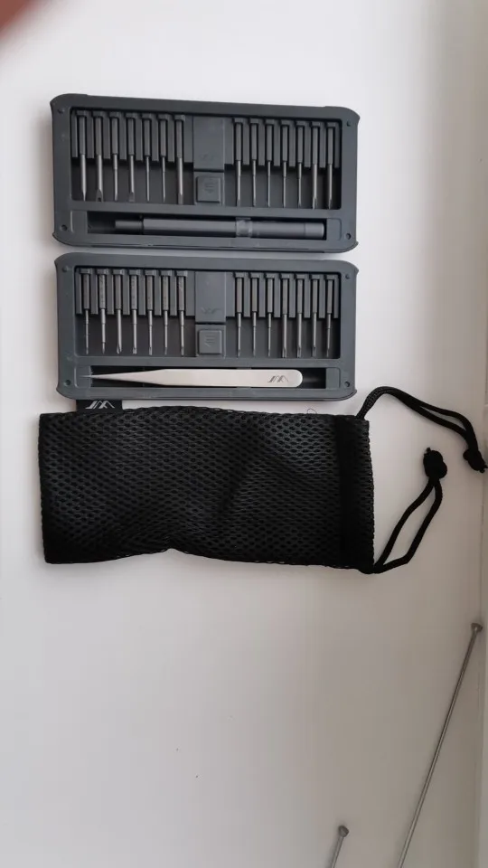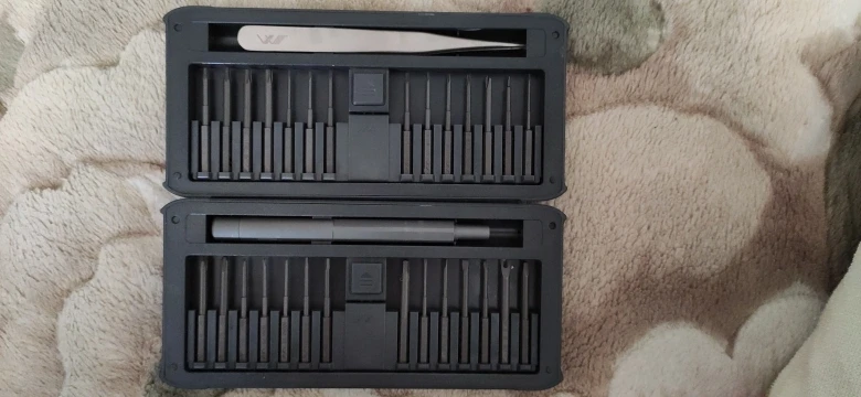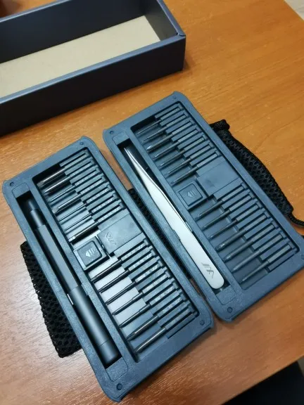 Выбирал между этими и сяоми, но из-за длины бит взял эти. Металл нормальный - напильником шлифуется. Удобно открученые винты класть на намагниченый край коробки. Есть сомнения на счёт необходимости пинцета, но если хоть раз пригодится, то пусть лучше будет