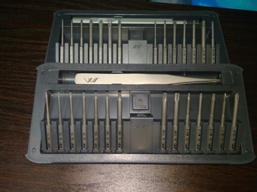 Шёл заказ долго, потерялся. Предложили вернуть деньги или отправить ещё раз. Выбрал отправку. Дождался. Доволен. Упаковка на отличненько! Минусы: если уронить набор, то разлетится. В комплекте идёт чехол - в нем можно ронять. Ложементы под отвертку и пинцет не самые удобные — неглядя вставить так, чтобы сидело зажатым не получиться. В целом набор хороший, увесистый. В локальных магазинах наборы победнее будут за эту цену.
