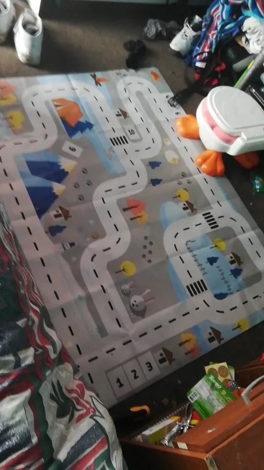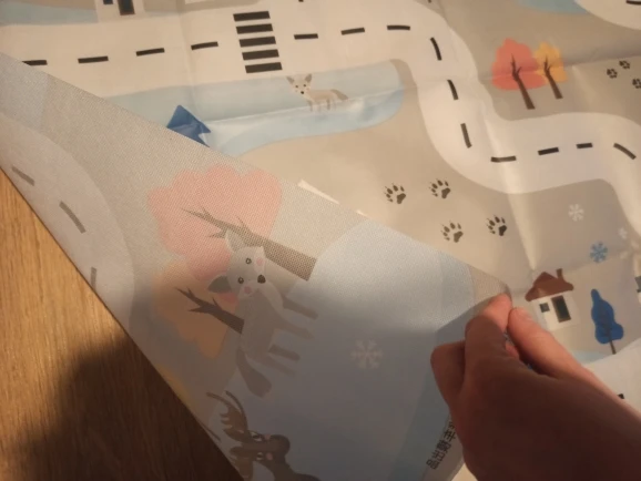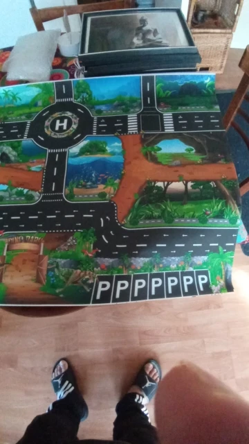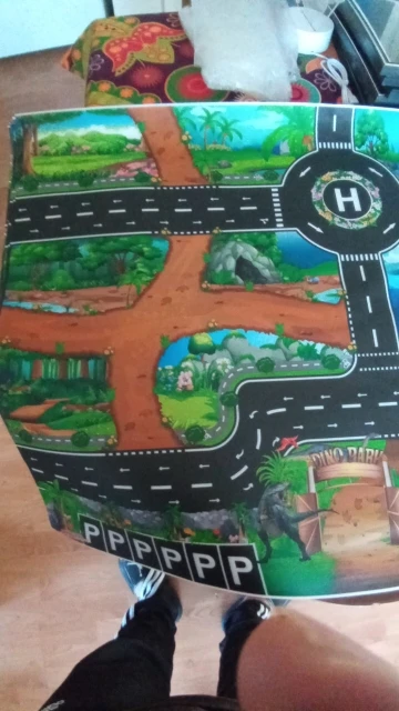 Хороший коврик для детей, играть в город. Сделан из плотной клеенки. Доставили в Москву за 1.5 месяца.