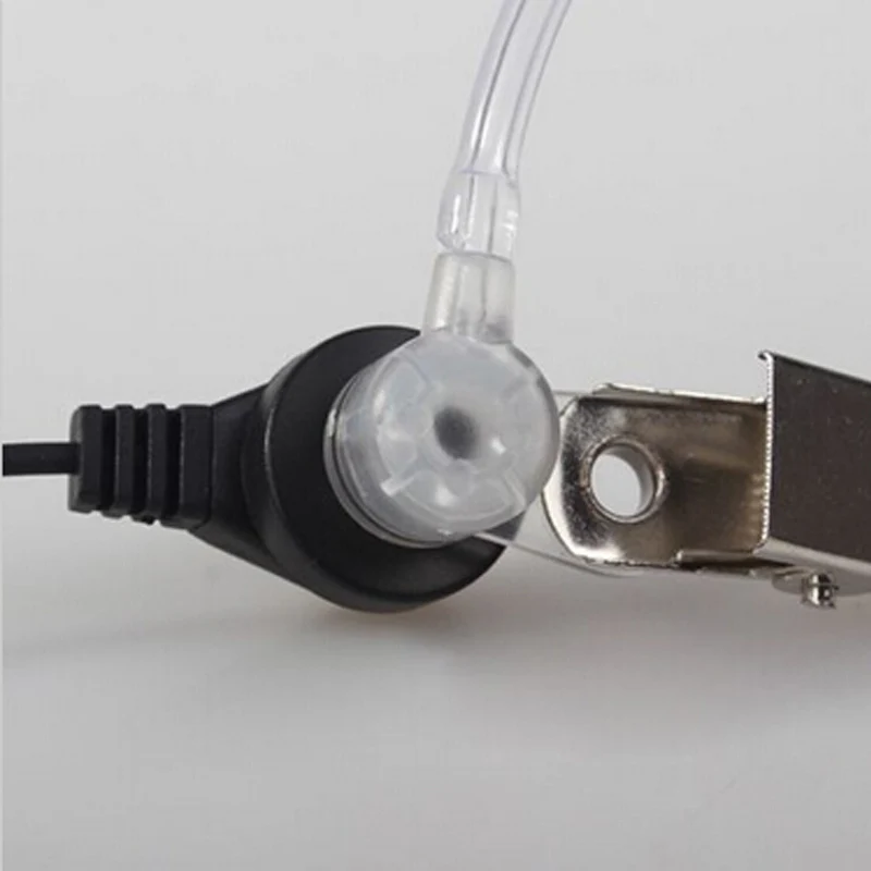 1. Прозрачная Гибкая акустическая труба2. Скрытый микрофон внутри PTT переключатель3. Мягкие пластиковые вкладыши плотно прилегают к уху4. Один запасной пластиковый наушник в комплекте
