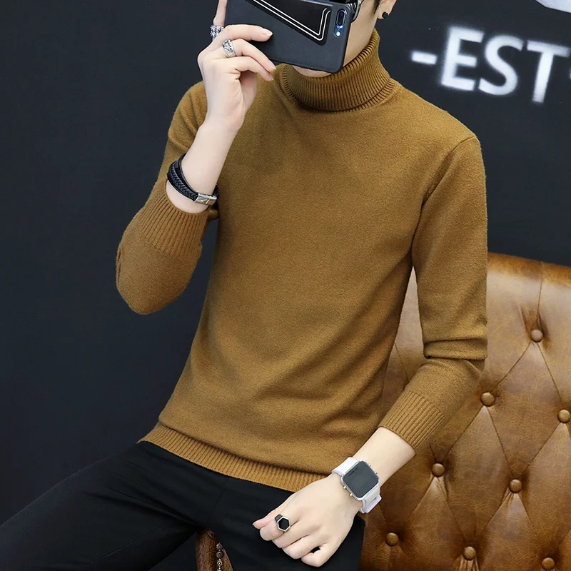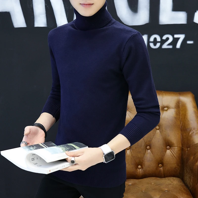 Новинка осенне-зимний мужской свитер с высоким воротником облегающая однотонная повседневная трикотажная рубашка мужской зимний теплый пуловер вязаный свитер