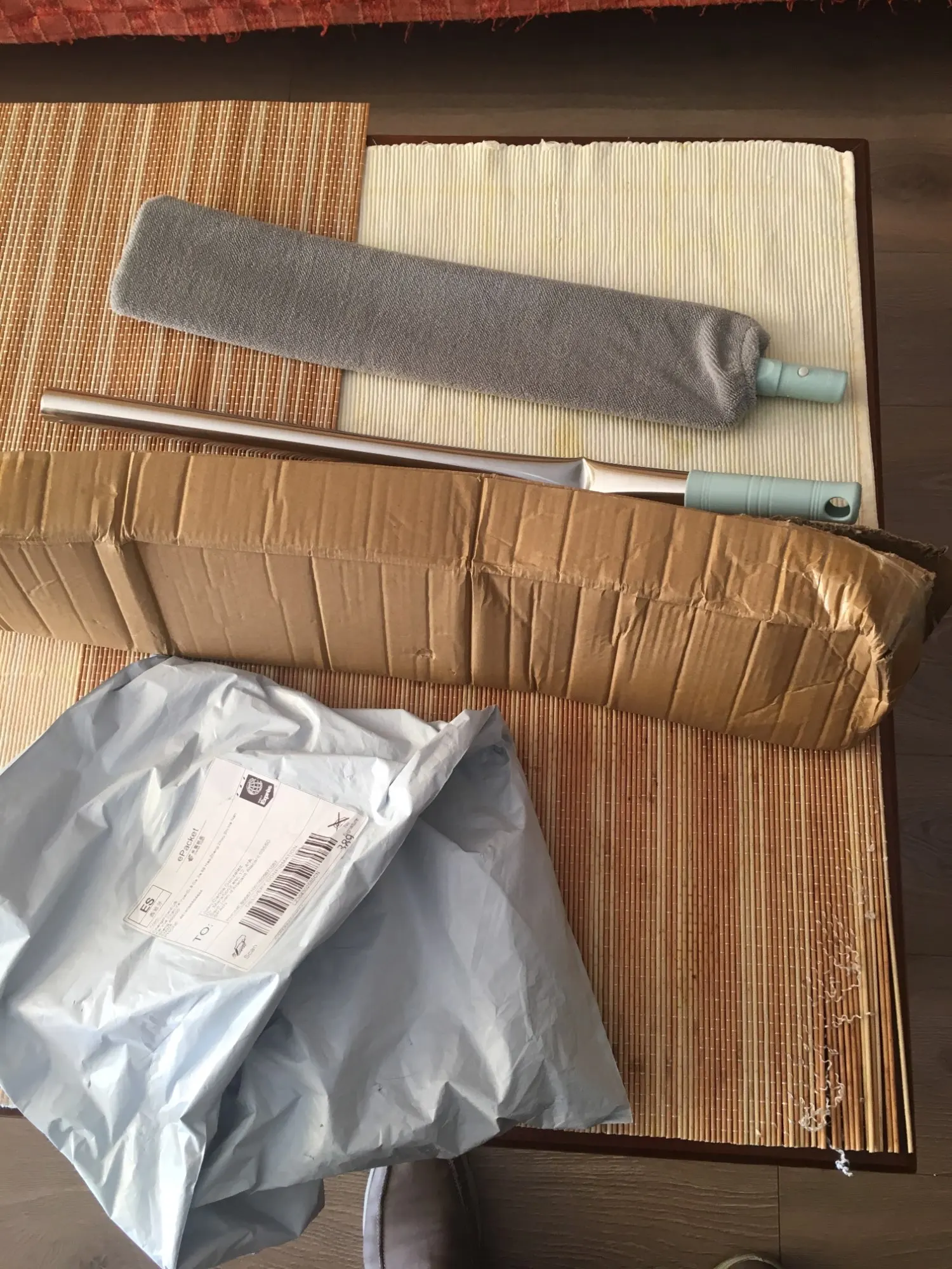 Прикольная штука, полезна при уборке, правда, ручка коротковата, но и так хорошо. Продавец отправил быстро, все пришло в целости, спасибо!