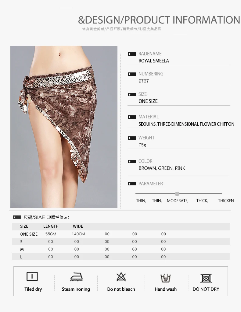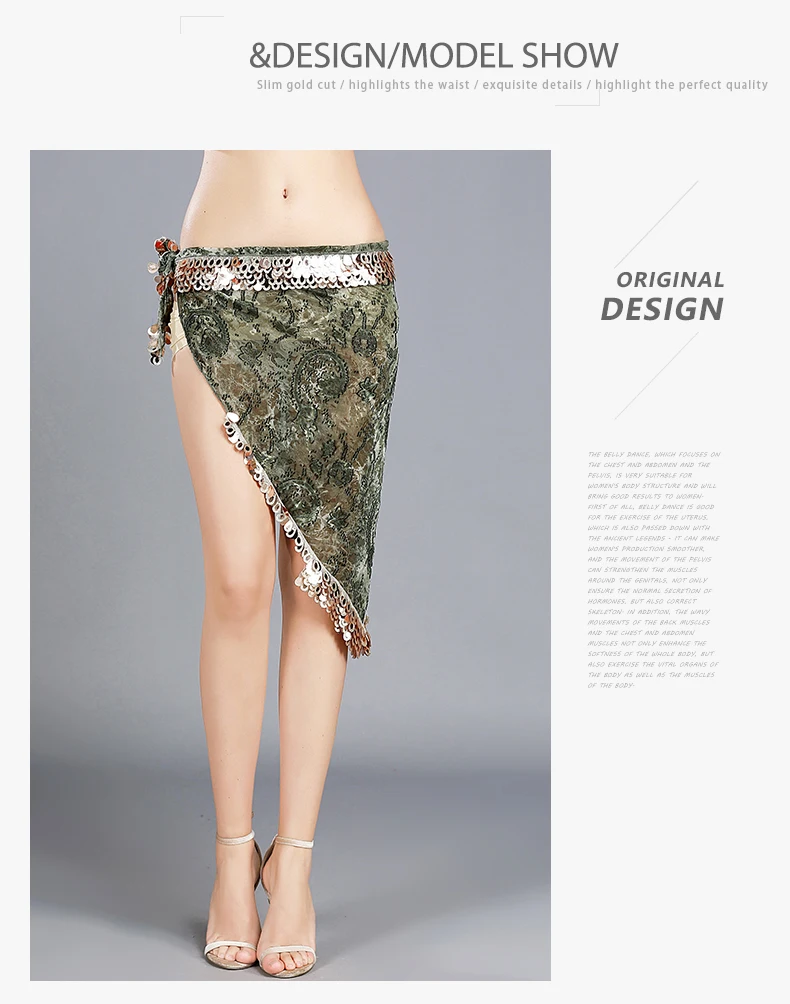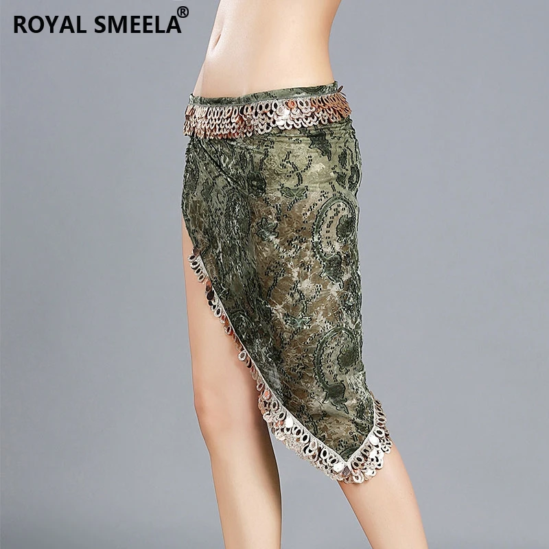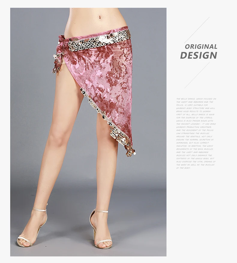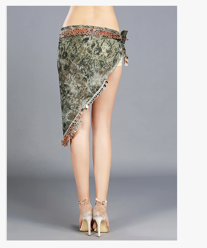 Женский набедренный платок для танца живота, с блестками и треугольным цветочным принтом