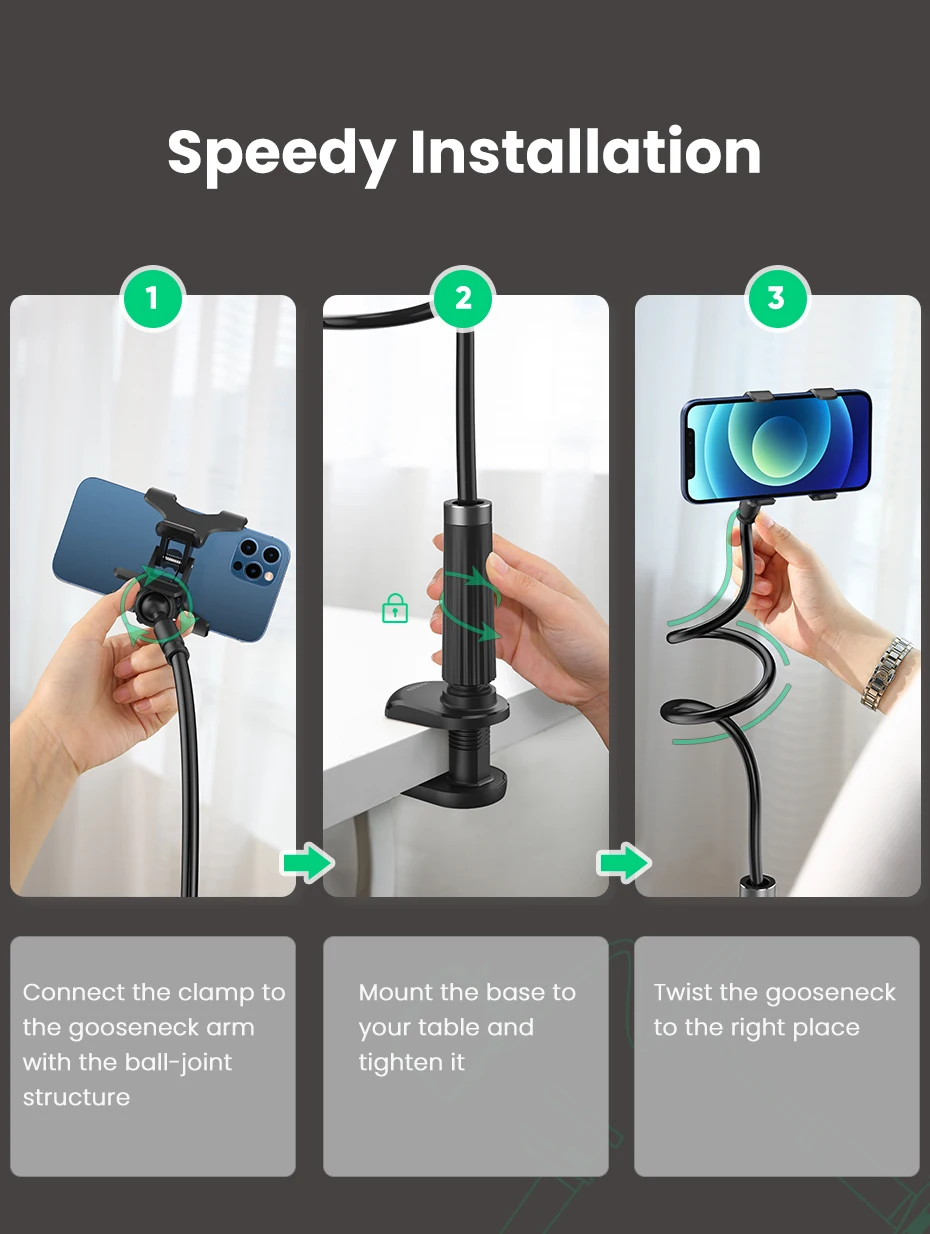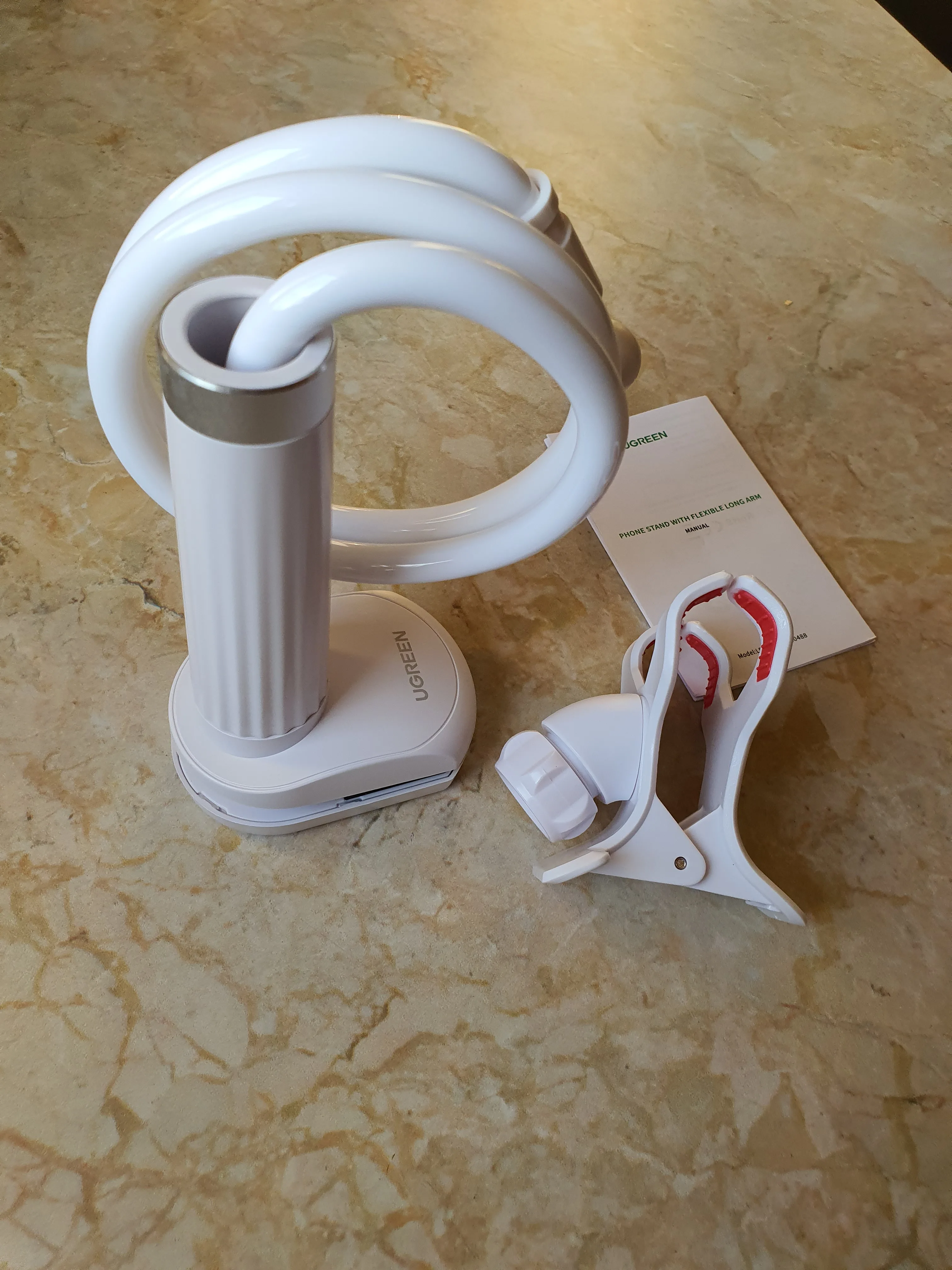 Прежде всего-он надежно удерживает смартфоны, это верно. Также он крепится при прикосновении к нему-это также верно, но это отличительная особенность всех таких конструкций. Вы должны применить некоторую силу, чтобы согнуть ядро. Я предлагаю взять 1 см от заявленной максимальной ширины столешницы, к которой она может быть прикреплена. То же самое, что я предлагаю сделать с заявленной максимальной шириной устройств, которые он может держать. Это будет более реалистично. Должен сказать, что челюсти моей стойки сделаны из перегревающегося пластика (не беда, но раздражающая деталь, с учетом ценника этого устройства). И я думаю, что белый цвет не очень практичен для такого устройства. В целом это не идеально, но определенно интересно, полезно для съемки чего-то или просмотра чего-то на смартфонах. Достаточно быстрая доставка, но Ugreen должен лучше упаковать такие большие коробки, как мой почти был разрушен (к сожалению, это не был подарок для кого-то).