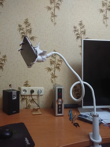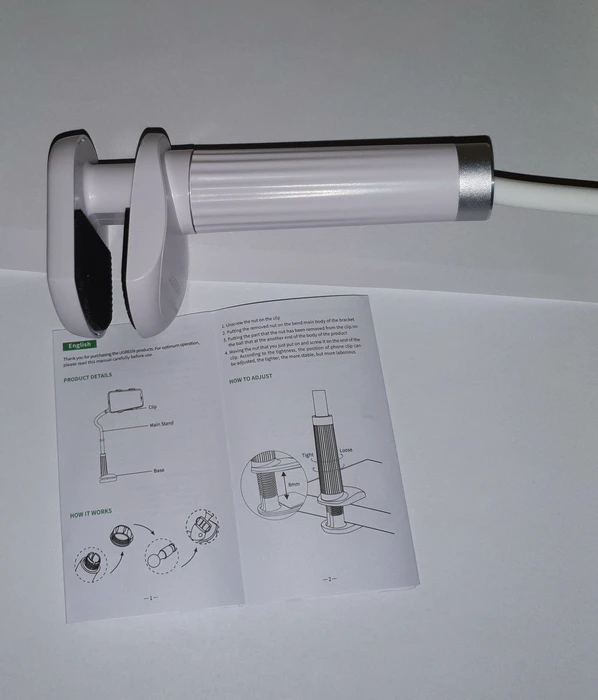 Исключительное качество, изгиб шнура является самым толстым, который я когда-либо видели. Для Сгибания почти 2 руки. Просто шнур немного пружинный, так что после настройки телефон немного болтается. Он крепится к столу очень хорошо, и вещь, которая держит телефон, легко открывается.