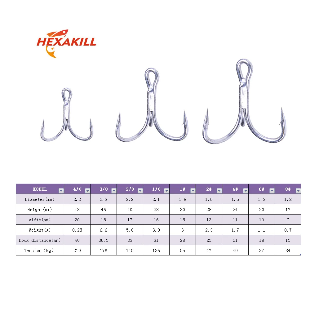 Hexakill 105 шт Матовый олова с высоким содержанием углерода Сталь высокая прочность ВЧ острые Крючки 4X раз приманка три вилки Три коготь рыболовный крючок