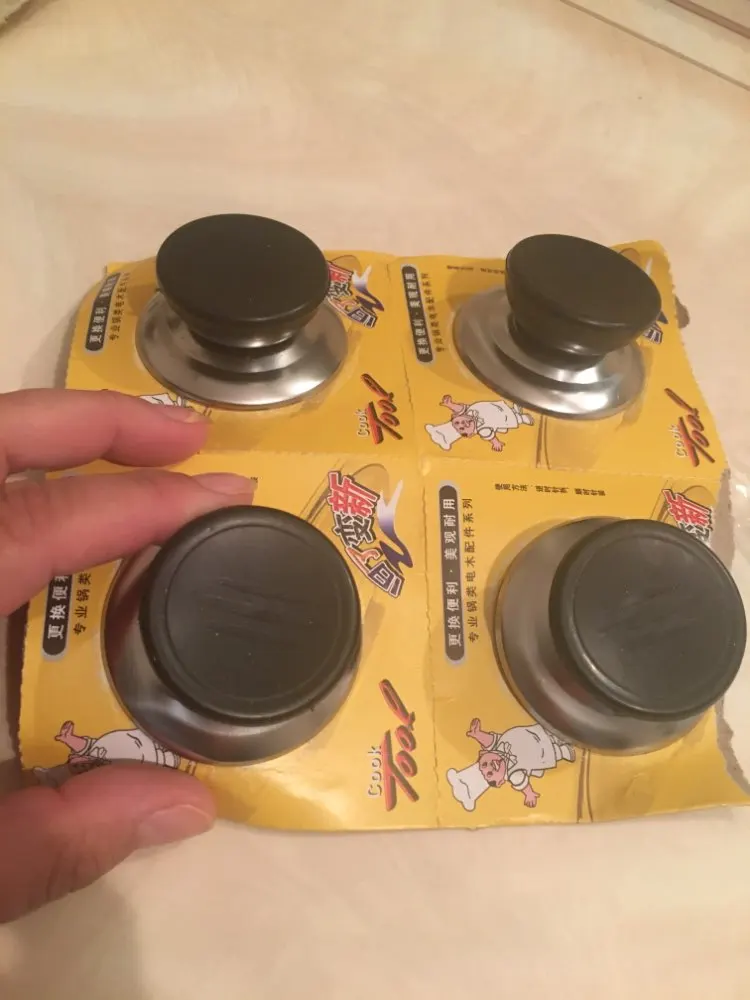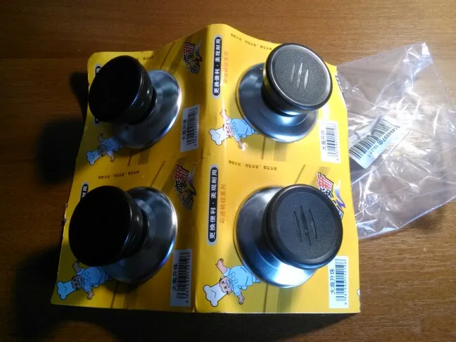 Все хорошо, пришло в целости и сохранности, принесли домой. В наборе 4 штуки, как и заявлено. Ручки прикручены к картонке и упакованы в пупырку. Хват удобный. Железка-прокладка, которая ставится под головку болта, хлипкая. Силиконовая прокладка в комплект не входит. На крышки ставила эти новые ручки, а силиконовую прокладку и железную штучку под головку болта брала от старых своих ручек. Одна такая железка вообще прорвалась при закручивании болта в ручку. В остальном все устроило. Брать рекомендую, несмотря на досадную мелочь, так красочно мной расписанную (люблю поболтать :) )