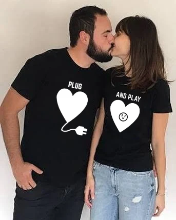 Одежда для жены и мужа; Футболка с надписью Love Plug and Play для пары; Корейские футболки для влюбленных в стиле Харадзюку Ulzzang; Летние футболки для пары