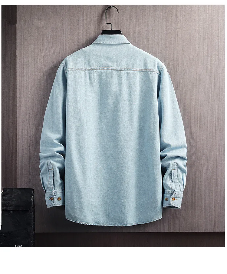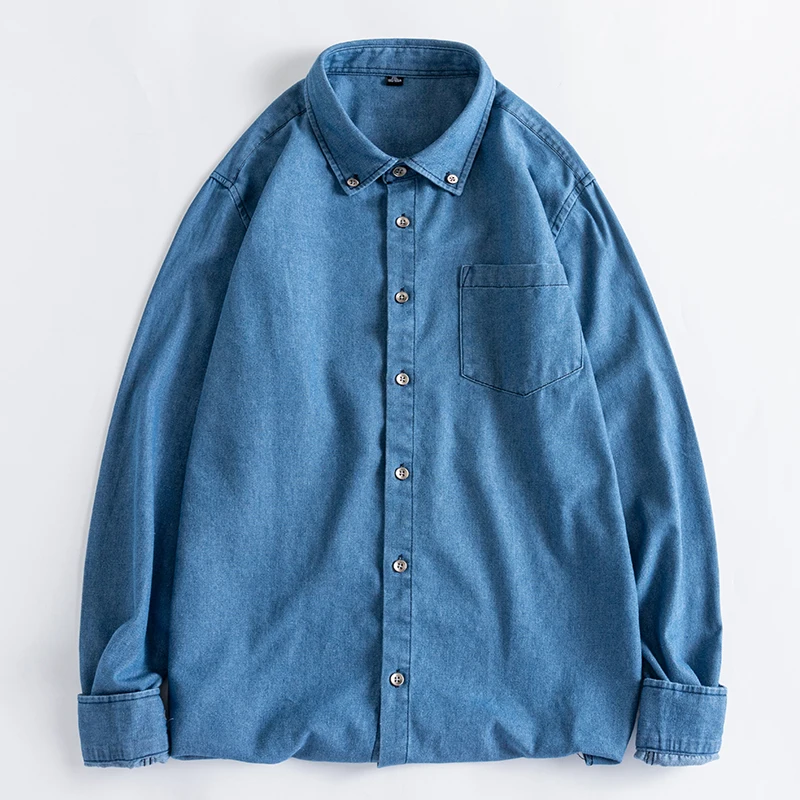 Рубашка мужская джинсовая с карманами, модная повседневная спортивная формальная рабочая сорочка из чистого 100% хлопка, однотонная черная джинсовая рубашка с нагрудными карманами