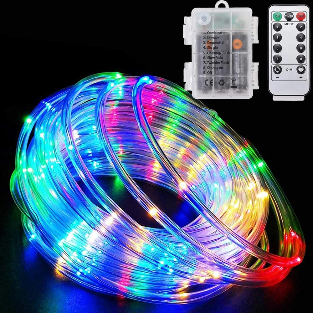 Гирлянда сказочной веревки прочна для внутренних/наружных мероприятий, гибкая может быть обернута в любом месте, где вы хотите, например, снеговик, деревья, используются как Свадебные Вечерние/рождественские украшения; 8 рабочих моделей с пультом дистанционного управления и 6 часов на 18 часов с функцией таймера делают струнные огни дольше, чтобы сэкономить деньги на покупке батарей.
