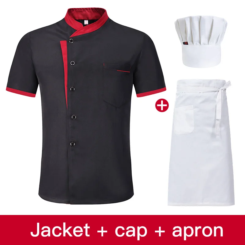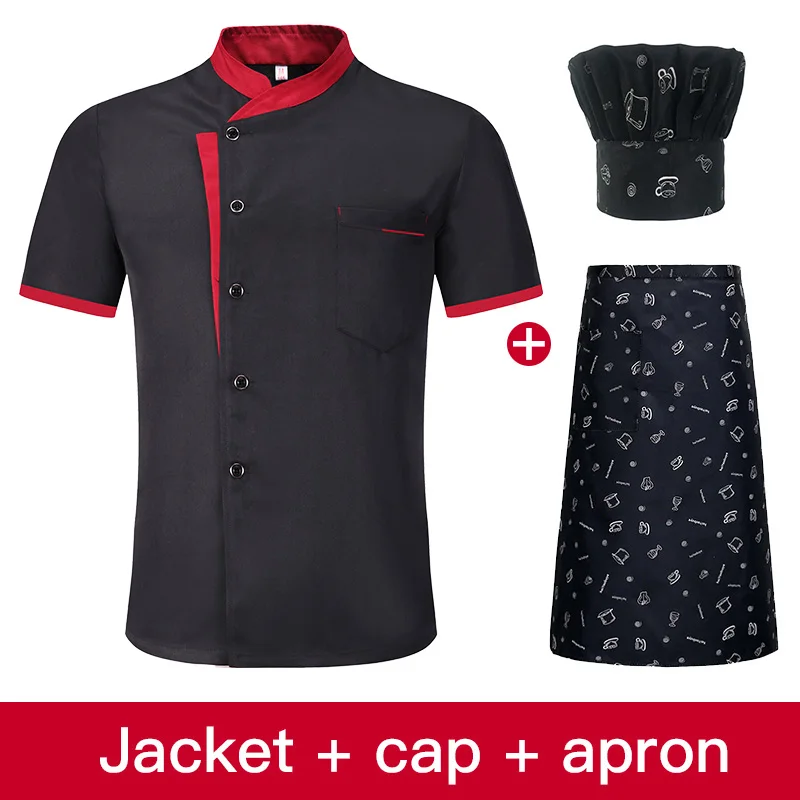Высокое качество, унисекс, униформа для повара отеля, кухонная рабочая одежда, с коротким рукавом, для шеф-повара, для ресторана, форма для готовки, рубашка, куртка, шляпа, фартук