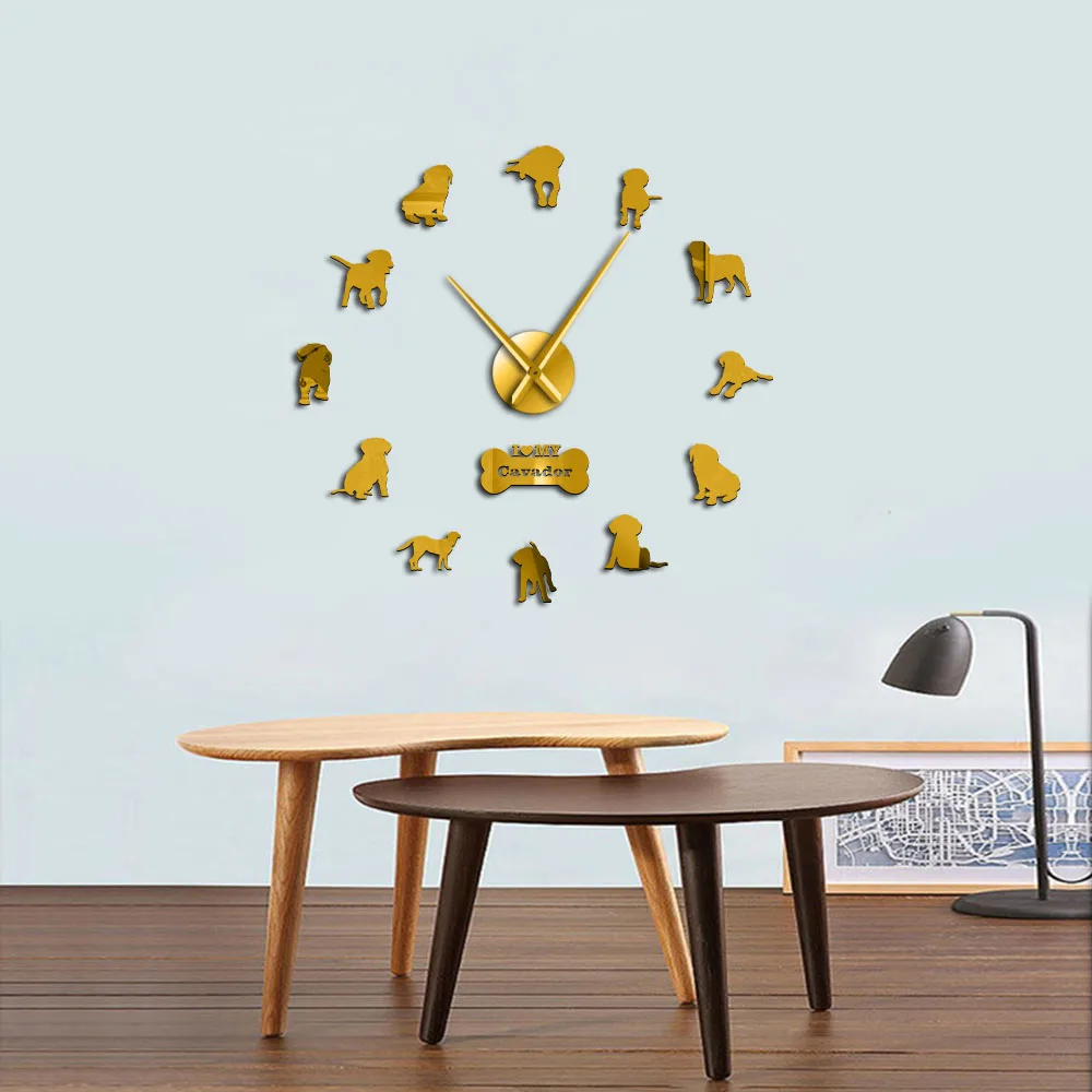 Смешанная собака порода кавадор 3D акриловые DIY настенные часы кавалер король Шарль спаниель Лабрадор ретривер щенок собачка домашнее животное настенные часы