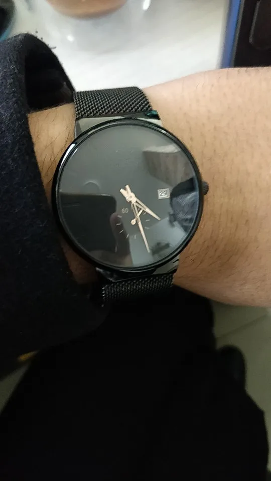 Плюсы: приехали быстро, смотрятся стильно. Минусы: стекло выпуклое - бликует, деления практически не видны, читаю без очков, но дату разглядеть очень трудно. Хотя как часы функцию выполняют вполне. Браслет короткий, на Шварца точно не оденутся, мне впритык. Но замок на браслете двойной - надежный.