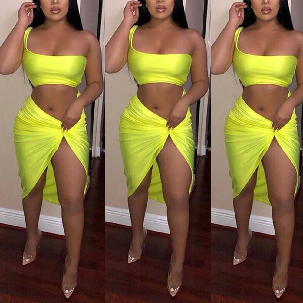 Женское сексуальное облегающее платье из двух частей, летнее пляжное платье для клувечерние, комплект: укороченный топ и юбка