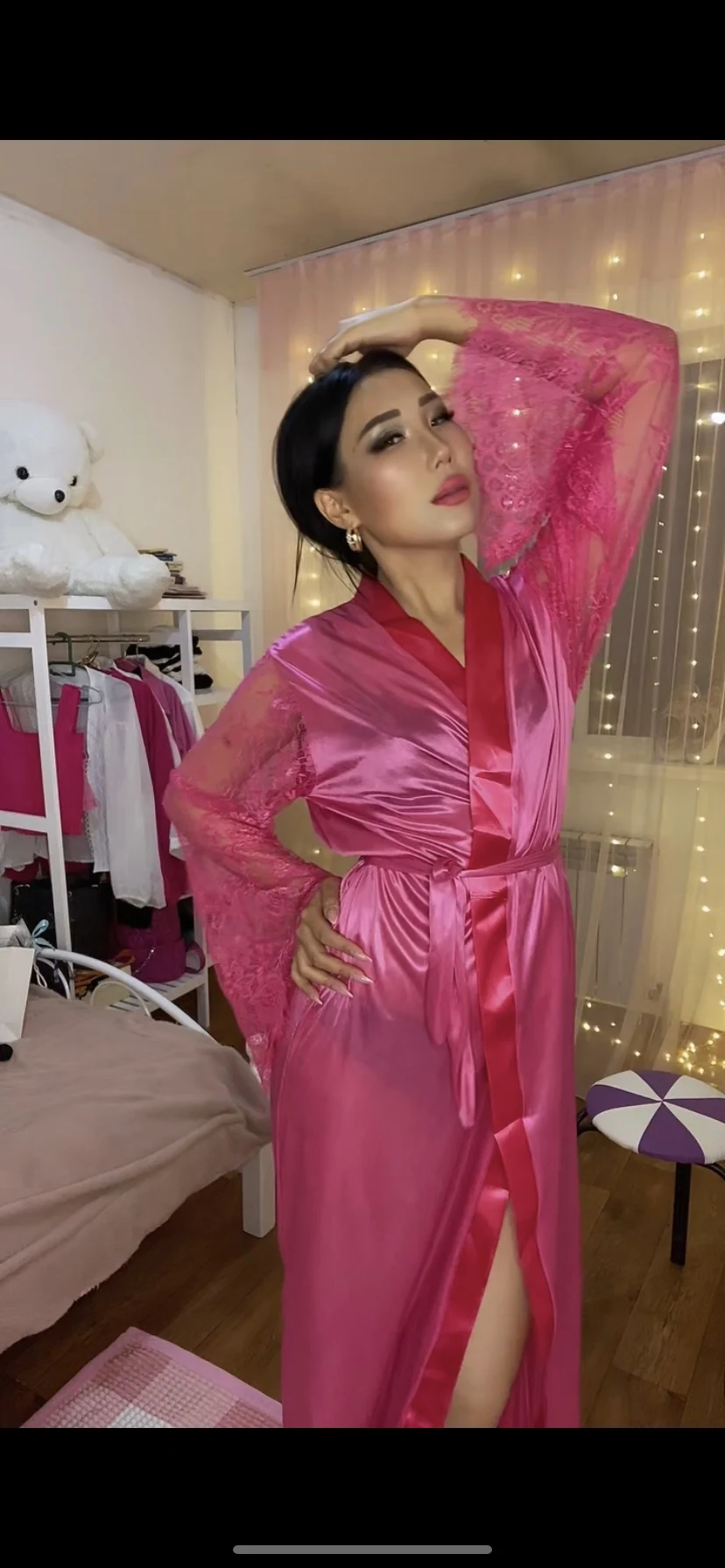 2021 сексуальное женское белье, Шелковый кружевной длинный халат, н...