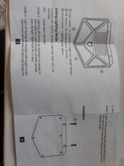 Товар отправляется немедленно, прибудет в кратчайшие сроки. Отлично работает, Отличный свет. Три режима работы: 1 свет включается в течение 15 секунд, чтобы пройти перед фотоэлементом; 2. Свет всегда находится на низкой интенсивности и проходит перед фотоэлементом, увеличивает интенсивность в большинстве случаев; 3 света и всегда на максимальной интенсивности. Конечно, с подсветкой свет не активируется. Очень доволен покупкой, 5 звезд продавцу.