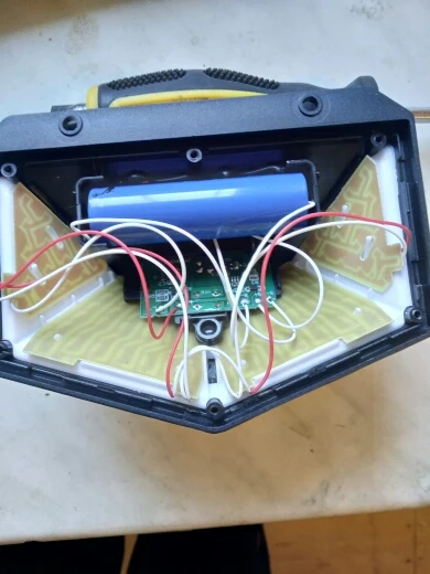 Доставка IML - 3 дня от МСК до Нижнего Новгорода; привёз курьер. Коробка целая, светильник без повреждений, рабочий. Стёкла проклеены качественно, но колпачок датчика движения болтался. Разобрал светильник, перепаял провода: много и длинные; пропаял запаянные вручную компоненты на плате (по ним было видно, что паялись отдельно и вручную); проклеил Моментом колпачок датчика. Аккумулятор - noname, в мане заявлена ёмкость 1200мАч. При напряжении на аккуме 3,59В зажжённый светильник потребляет около 540мА. Солнечная батарея при освещении 10Вт-светодиодом с расстояния 20см выдаёт 4,4В. У задней крышки нет уплотнителя - есть риск попадания влаги: надо будет чем-нибудь проклеить. Но в целом - не плохо: светит ярко, с режимами разобрался, собран хорошо. Правда, думаю, что цена светильника несколько завышена...