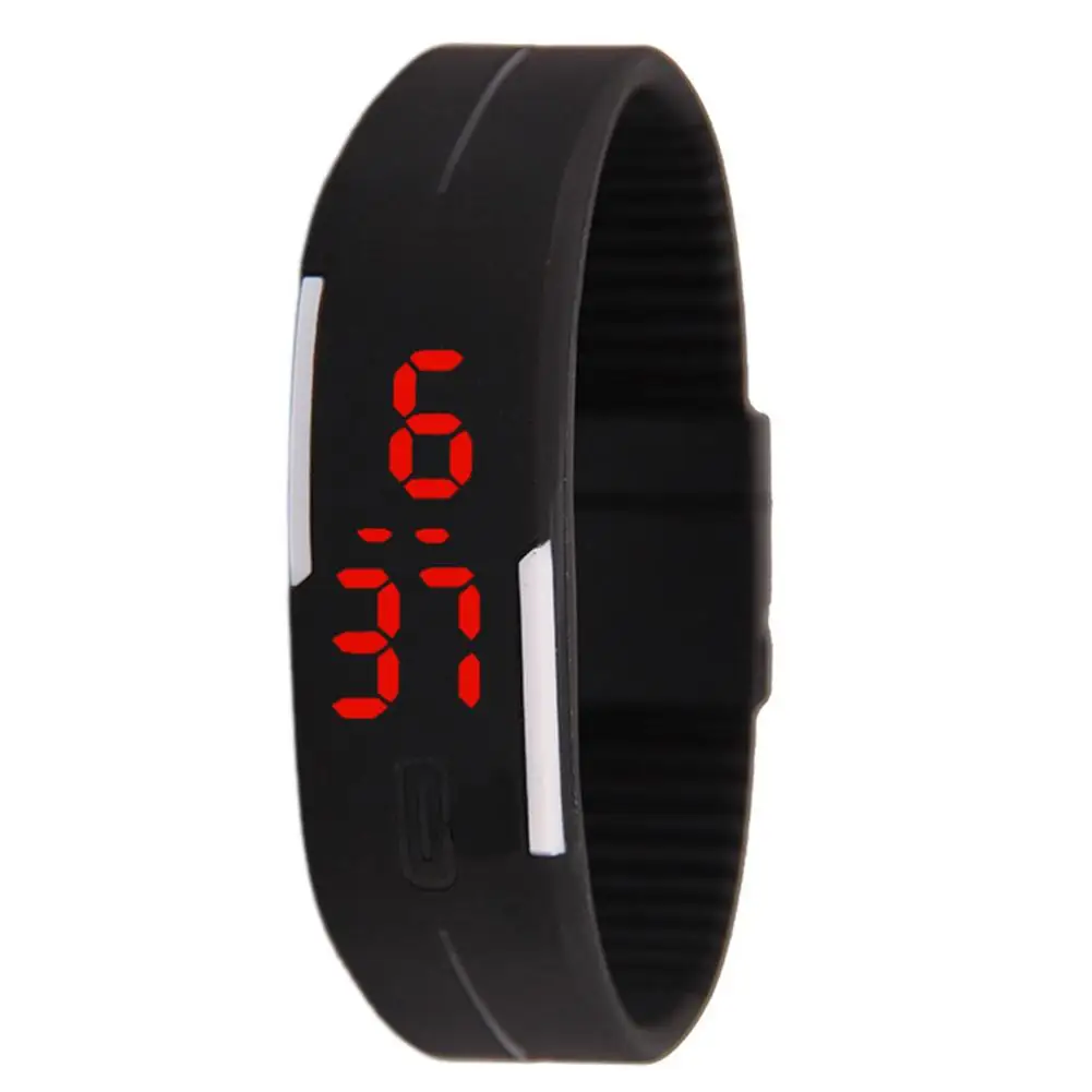 Новые спортивные детские цифровые наручные часы на тонком ремешке со светодиодной индикацией времени и даты