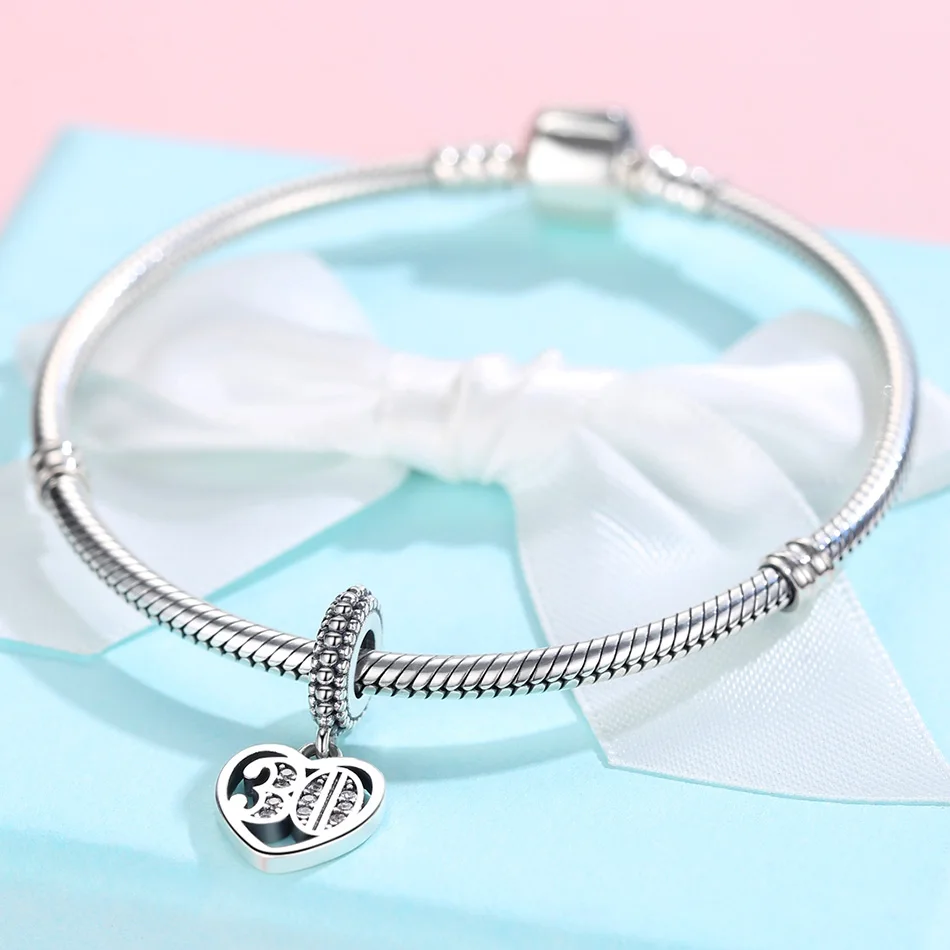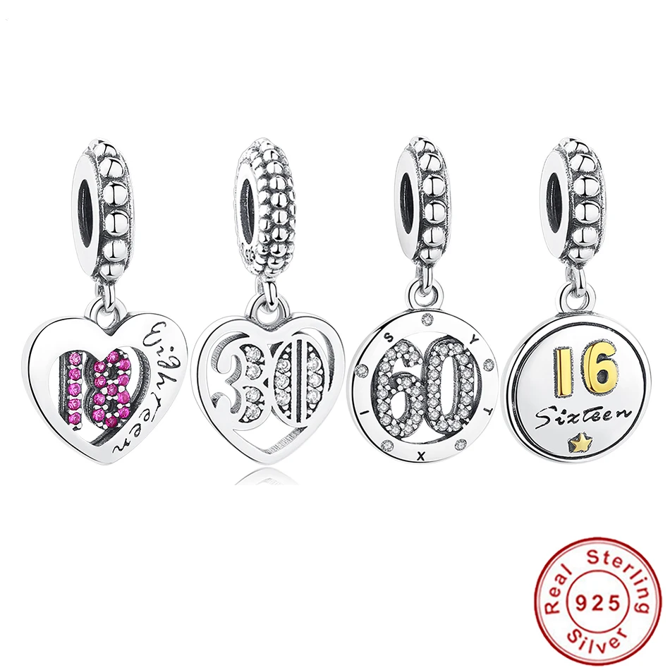 18 лет любви Серебряный Кулон Шарм 925 Стерлинговое серебро хрустальные бусины подходят оригинальный браслет ожерелье ювелирные изделия