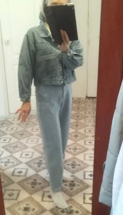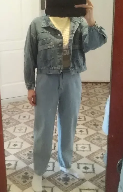 Куртка классная, но имеет химический запах, и рукав коротковат, даже при росте 160см, но я подкатила рукав, смотрится хорошо, оверсайз.