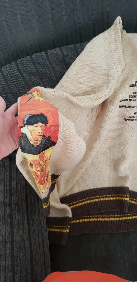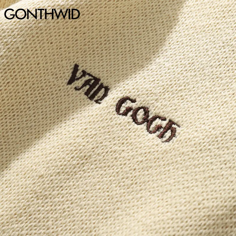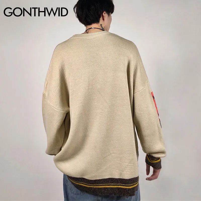 Вязаный свитер GONTHWID с рукавами Ван Гога, в стиле пэчворк, мужской свитер в стиле хип-хоп, с вышивкой, с круглым вырезом, 2019