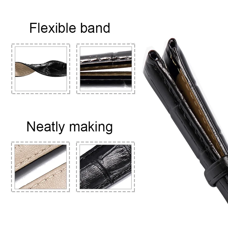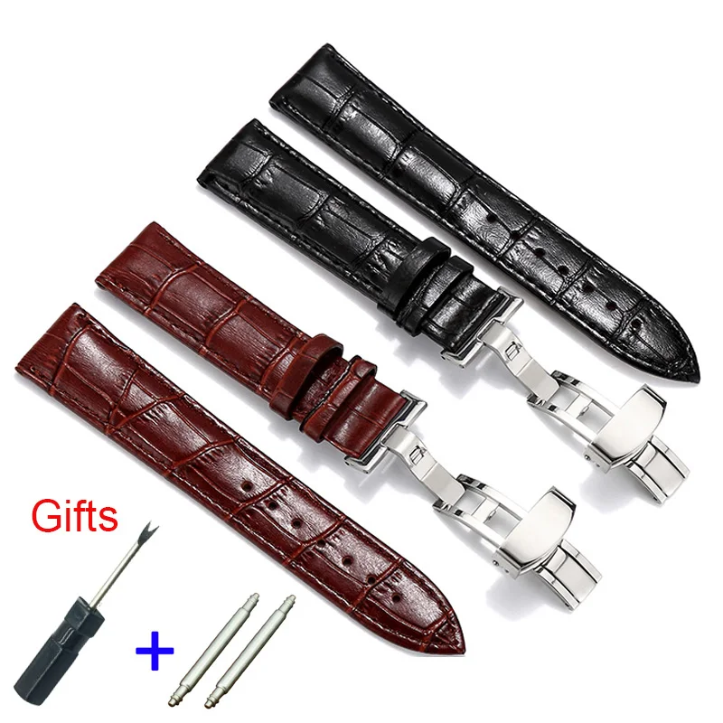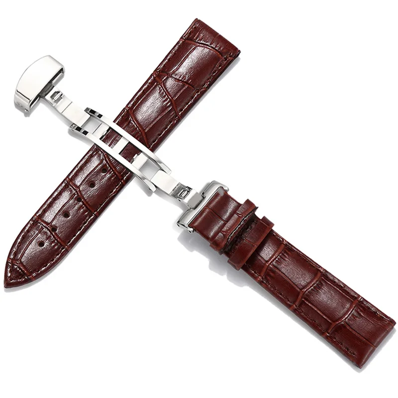 20 мм Натуральная кожа черный ремешок коричневый 22 мм ремешок для часов с бабочкой стальной ремешок с пряжкой часы водонепроницаемый браслет