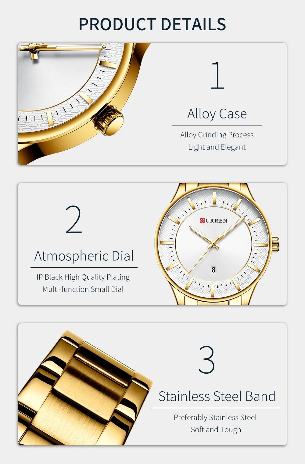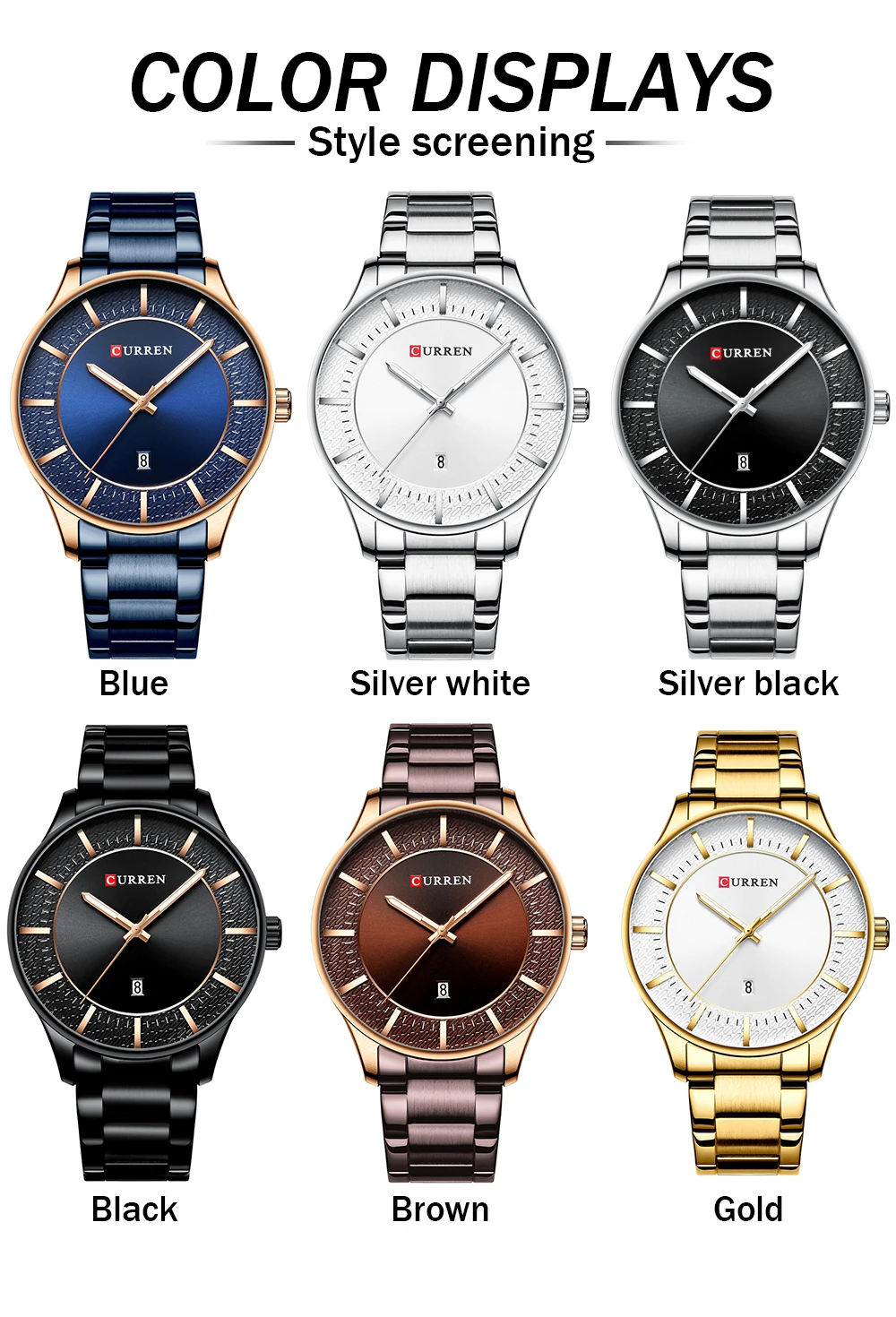 Часы CURREN олицетворяет деликатное качество жизни, каждая деталь хорошо продумана. 1. Сплав 2. Авто дата 3. Браслет из высококачественной нержавеющей стали