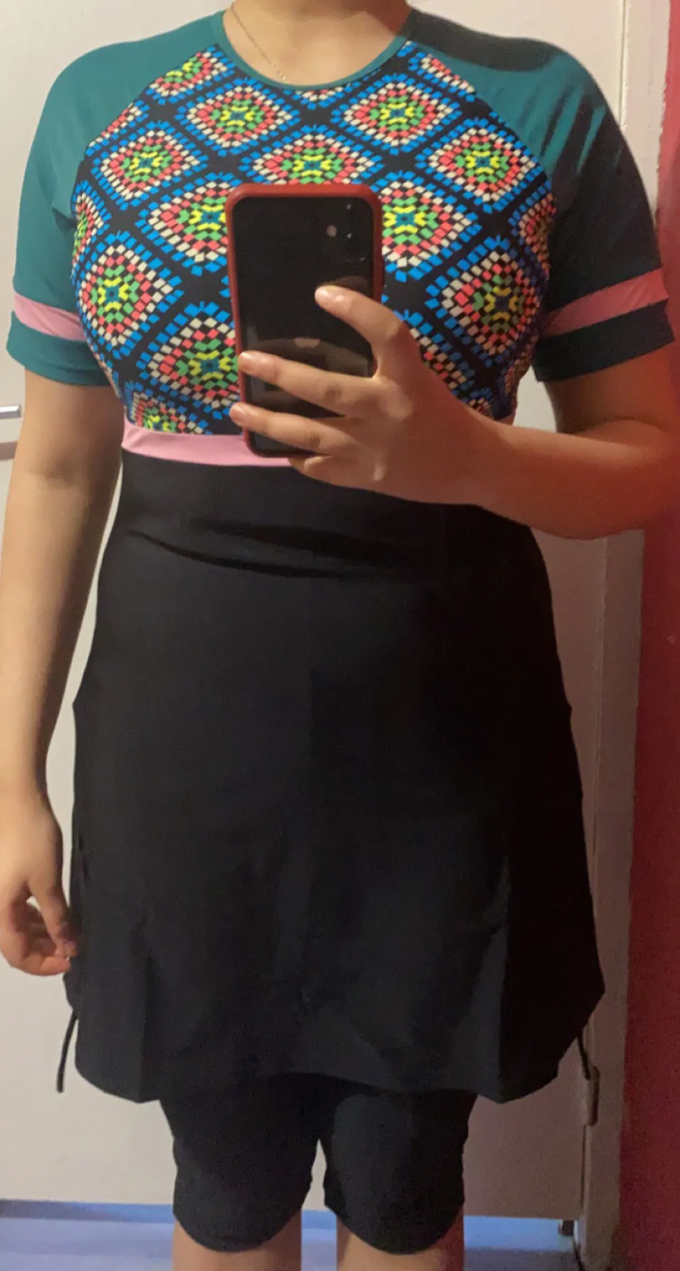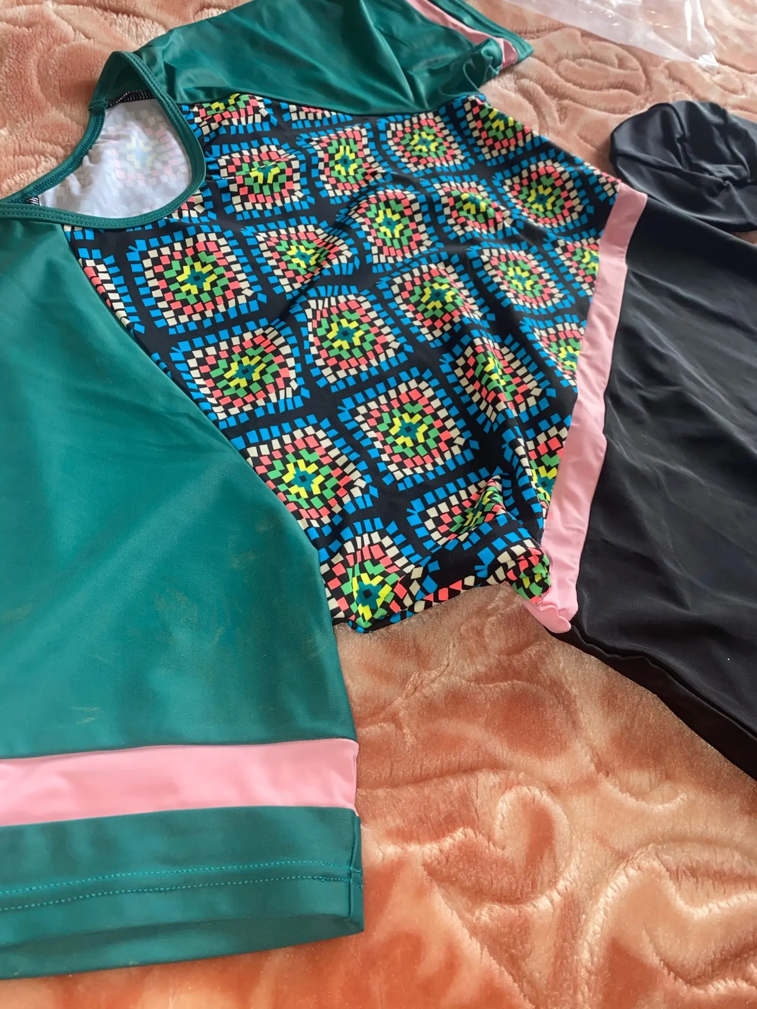 Размера плюс Мусульманский купальник, Женский скромный пэчворк, закрытый купальник с коротким рукавом, ислам ic хиджаб, ислам Буркини, одежда для купания