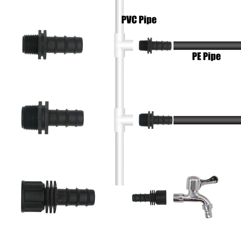Соединители для ирригационных труб, полиэтиленовые соединители с резьбой 12 дюйма, 34 дюйма, наружная резьба, 16 20 мм, 5 шт.