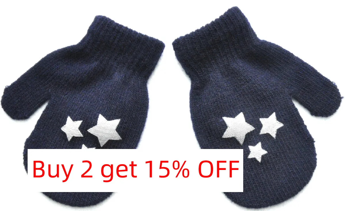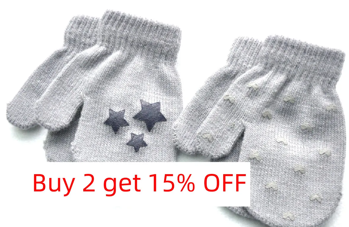 Теплые варежки для детского сада, детские вязаные перчатки, мягкая акриловая пряжа, однотонные, милые, с принтом звезды, любви, обернутые перчатки для пальцев