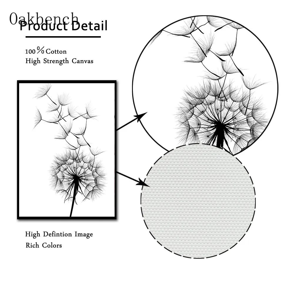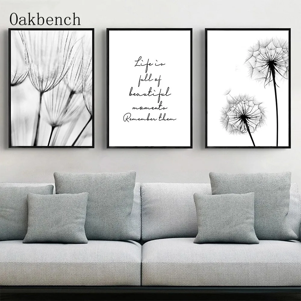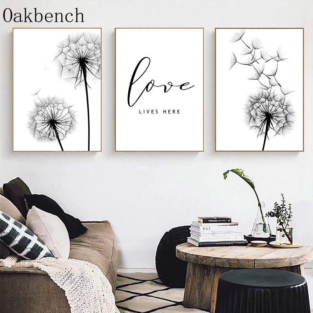 Плакат на холсте Одуванчик, черно-белые плакаты, Минималистичная живопись, ботанический принт, скандинавские настенные картины для декора гостиной
