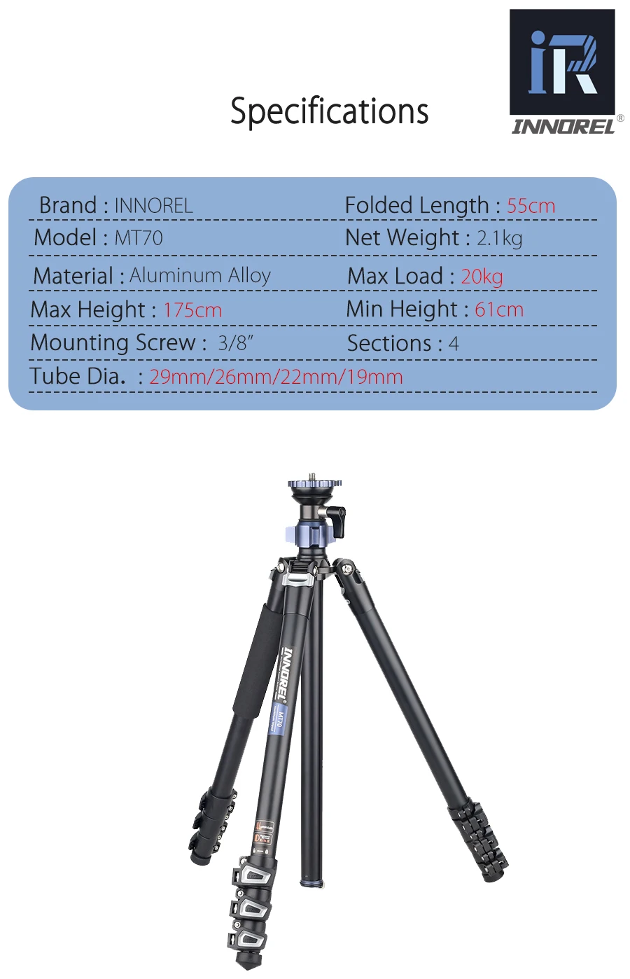 Характеристики: (штатив MT70)