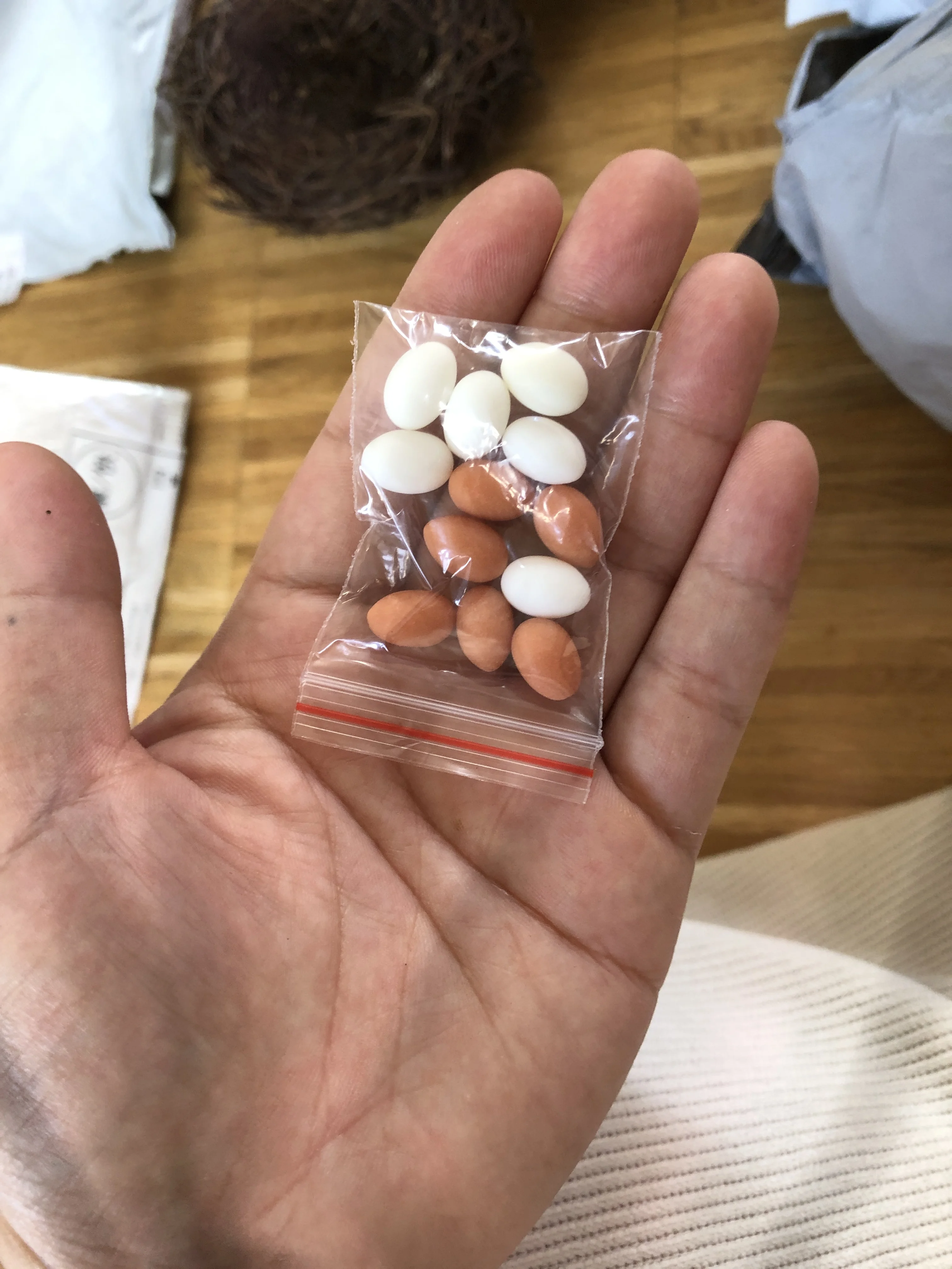 Особенности100% Новинка и высокое качествоПредметы интерьера, украшение рабочего стола офисаРучной продуктСпецификация:Материал: смолаЦвет: как показано на изображенииРазмер: Диаметр гнезда: 8-12 смЯйцо: 0,8-1,2 смПосылка6 шт яиц или1 x гнездо