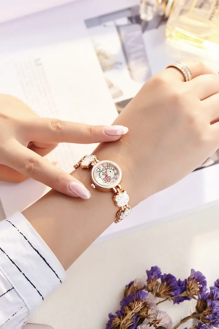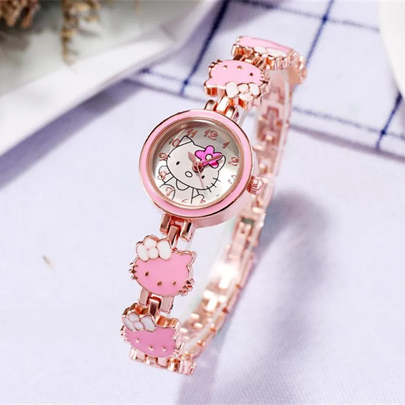 Детские часы для девочек, новинка 2019, часы с мультяшным рисунком розового кота, модные детские милые резиновые кварцевые часы, подарок для девочек