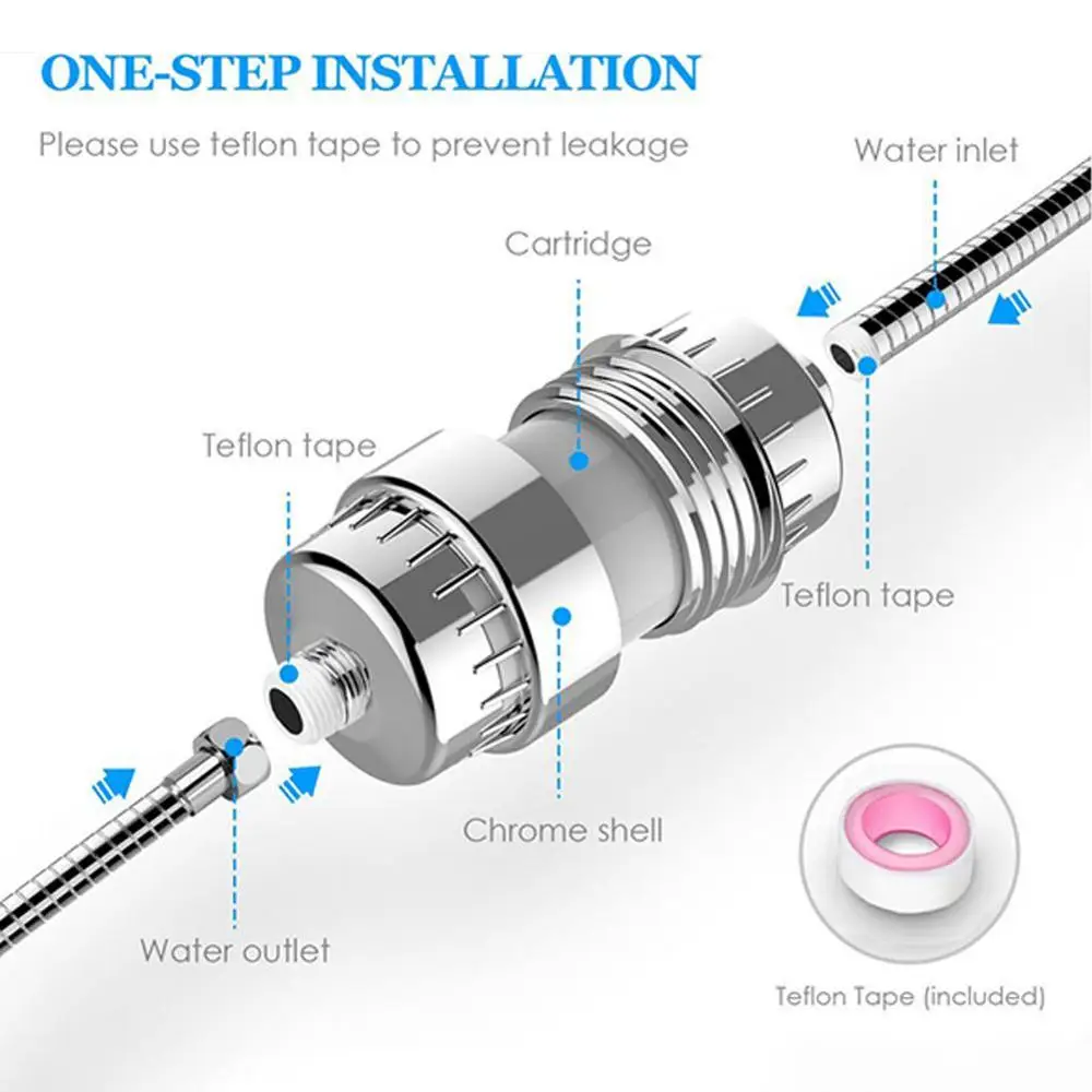 4. Высокое соотношение пористости, высокая производительность воды и хороший эффект фильтрации. Активный углерод Удаляет хлор и плохой запах. KDF удаляет хлор и ионы тяжелых металлов, такие как As Zn2 +,Hg2 +,Cu2 +, cd2.легко установить-просто привинтите между душевой и душевой Флекс.