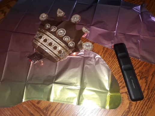 Сам шарик красивый, корона красивая. Но! Надули гелием. цифру Шарик более менее взлетел. Но когда надули корону и прикрепили к шарику, она перевесила. Шарик принял горизонтальное положение и больше не взлетал. Стал слишком тяжелым. Хотели просто привязать к стулу нелетающим, но он заваливается из-за короны горизонтально. Может, это только у нас так