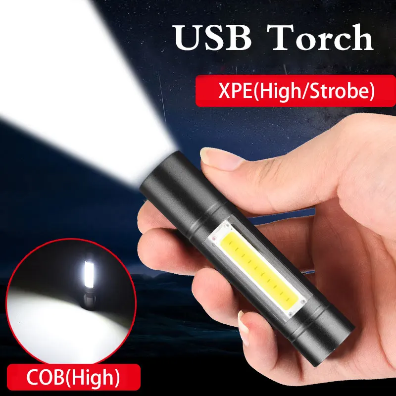 Мощсветильник светодиодный фонарик ANYIGEDEJU с USB-зарядкой, XPE COB, тактический фонарь, фонарь с аккумулятором 600 мАч, фонарь для кемпинга и охоты