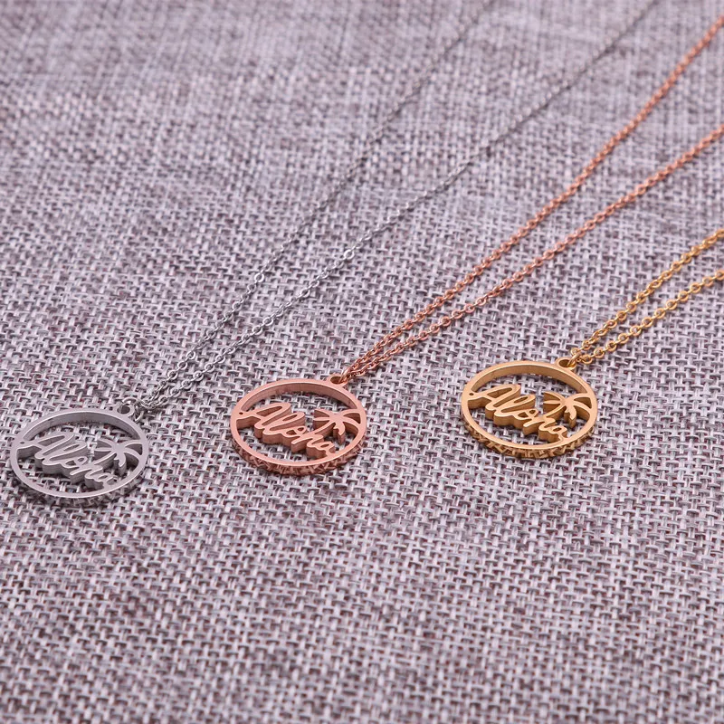 Ожерелье из нержавеющей стали с кокосовым деревом ALOHA, подвеска серебряного цвета с золотымрозовым золотом, ожерелье для девушек, Прямая поставка