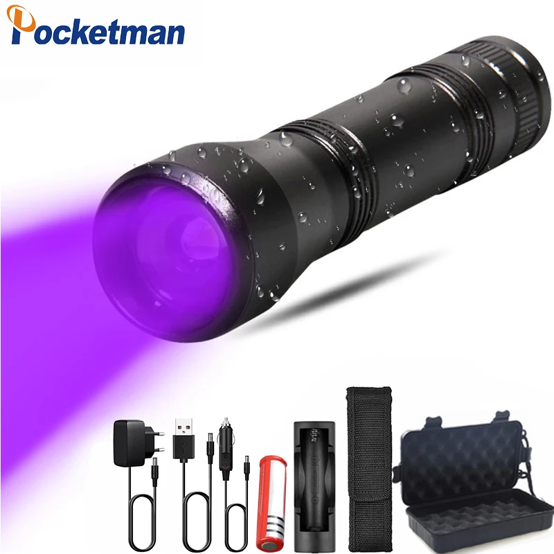8000 Lums Светодиодный УФ-светильник, УФ-светильник L2/T6, белый светильник светодиодный фонарь светильник 5 режимов, масштабируемый 395nm черный светильник с батареей 18650