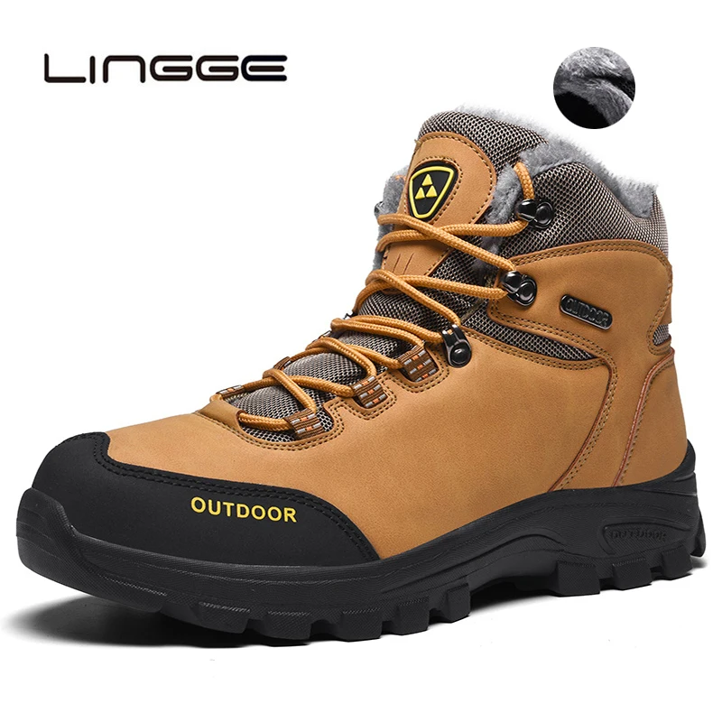 LINGGEочень теплые мужские зимние ботильоны из искусственной кожи, мужские осенние Водонепроницаемые зимние ботинки, осенние ботинки для отдыха, мужская обувь 39-46