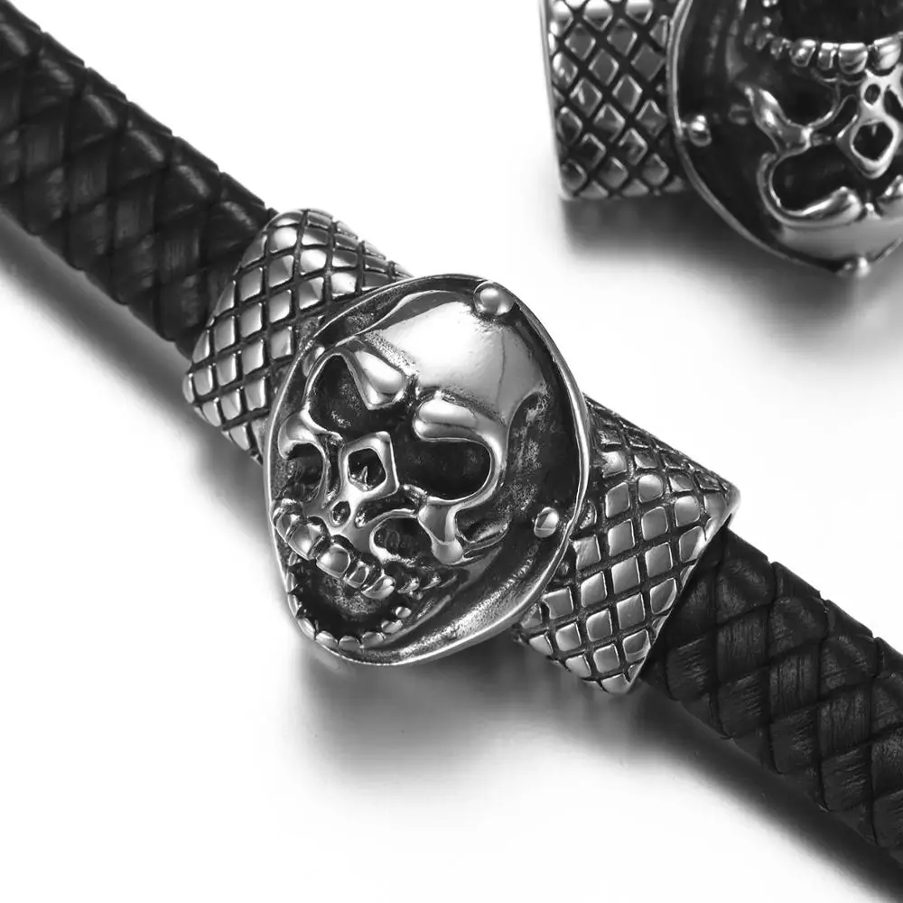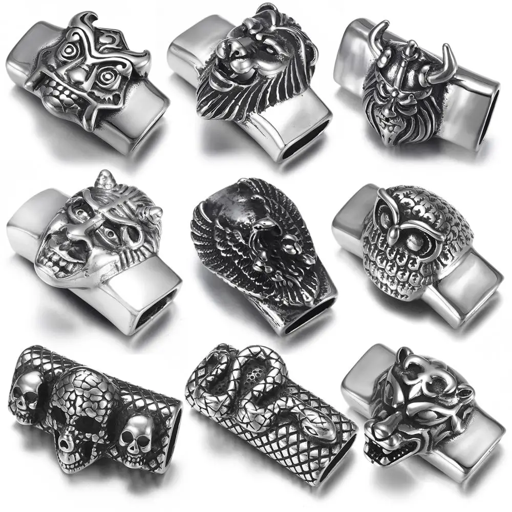 Бусины-слайдеры из нержавеющей стали в стиле панк, подвески-черепа, животного, для изготовления плоских кожаных мужских браслетов сделай сам, 12*6 мм, 2 шт.