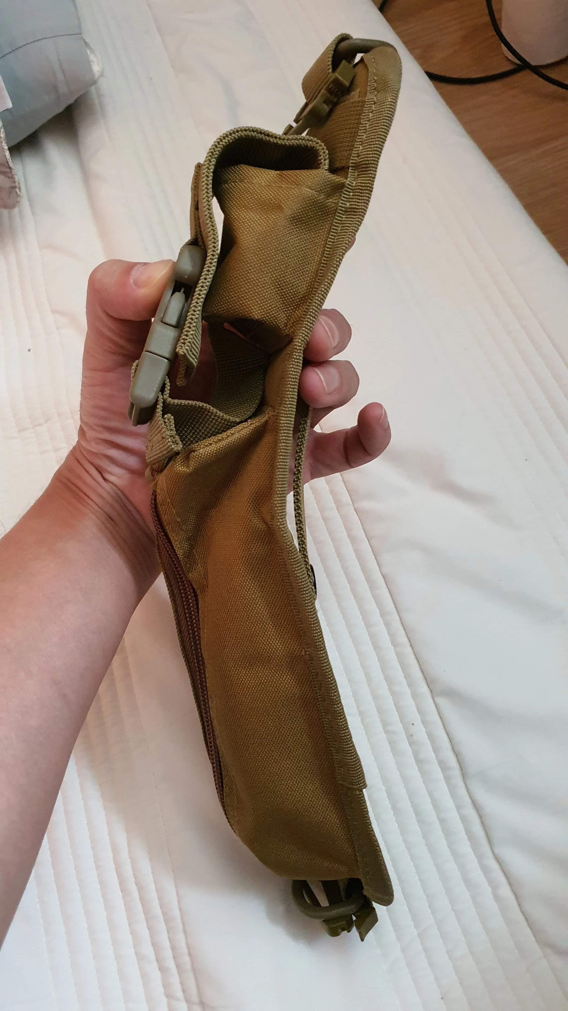 Хорошая, оказывается, штука. Жаль черную заказал. На зеленом рюкзаке смотрится не очень. Не сразу разобрался что крепится и защелкивается и поэтому концы по началу отваливались от лямки. Затем долго не мог понять что же такое мелкое может туда влезть, в этот маленький верхний карман. Оказывается, что закрывашка кармана приклеена на липучку и её можно перевесить. И моя рация baofeng uv-82, которая довольно длинная, влезла и там ещё запас остался. В большой карман не придумал что класть, но скорее всего очки. Просто они у меня на поясе. Позже может придумаю что туда можно поместить.